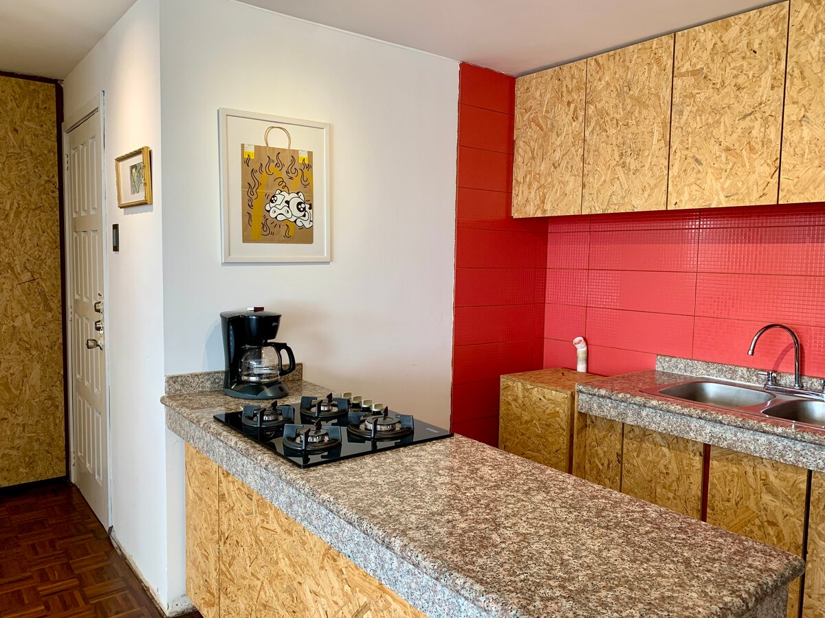Cozy suite, ideal for both vacation and business trips. Clean, comfortable and fully equipped with everything you need for a pleasant stay. Maximum capacity: 3 people. The building's location is excellent, in the heart of the Mariscal sector, close to banks, bakeries, pharmacies, restaurants and all kinds of services. On the ground floor you can easily take a bus or taxi. 🅿️Parking available at an additional cost of $5 per night.