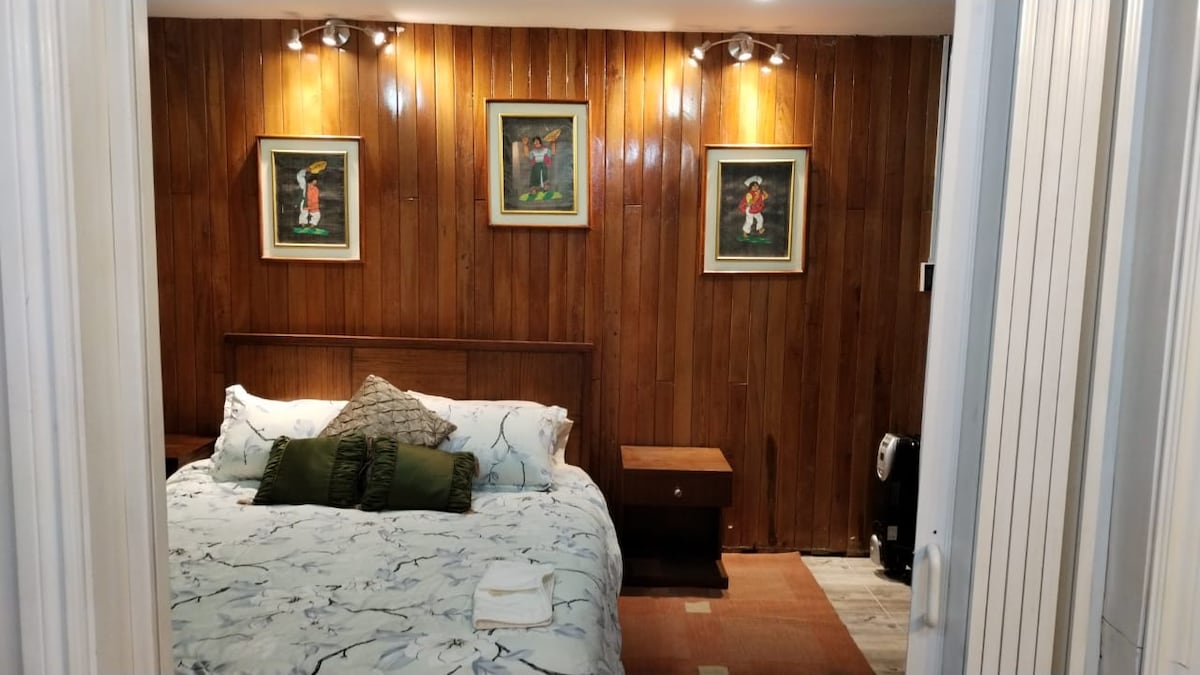 Mini suite totalmente privada a solo 300 metros de la estación El Labrador del Metro de Quito. Incluye horno de leña, BBQ y fogata. El baño y el sauna están separados y son para uso exclusivo de los huéspedes. Está en un barrio seguro con guardianía privada, acceso independiente y parqueadero exclusivo. Adicionalmente el huésped puede disfrutar de un jardín para su uso personal. La suite está ubicada en el centro norte de Quito, aceesible a toda la ciudad a través del metro de la ciudad.