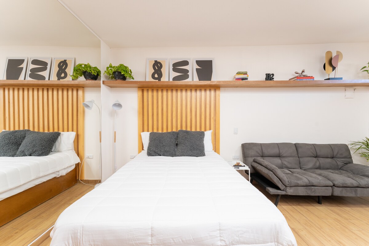 Modern two-bedroom industrial loft in the heart of Durango. One room with a king bed and both with dedicated workspaces — perfect for remote workers or travelers seeking comfort and style. Includes parking, full kitchen, and fast WiFi, just minutes from the historic center.