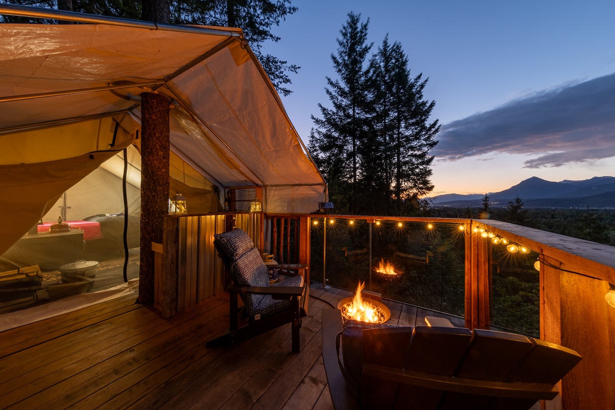 2 nights for the price of one-remaining Apr&May This unforgettable nest high above the forest floor is your opportunity to take flight. Endless trails give you access to natural views and experiences. Snowshoes provided, then spend your evening up on the deck around the tree top propane fire pit. Cook your meals in the outdoor kitchen or on the wood burning stove in the Trapper's TENT. Eat inside or out under the sky, then curl up in the luxurious queen bed to rest up and do it again tomorrow!