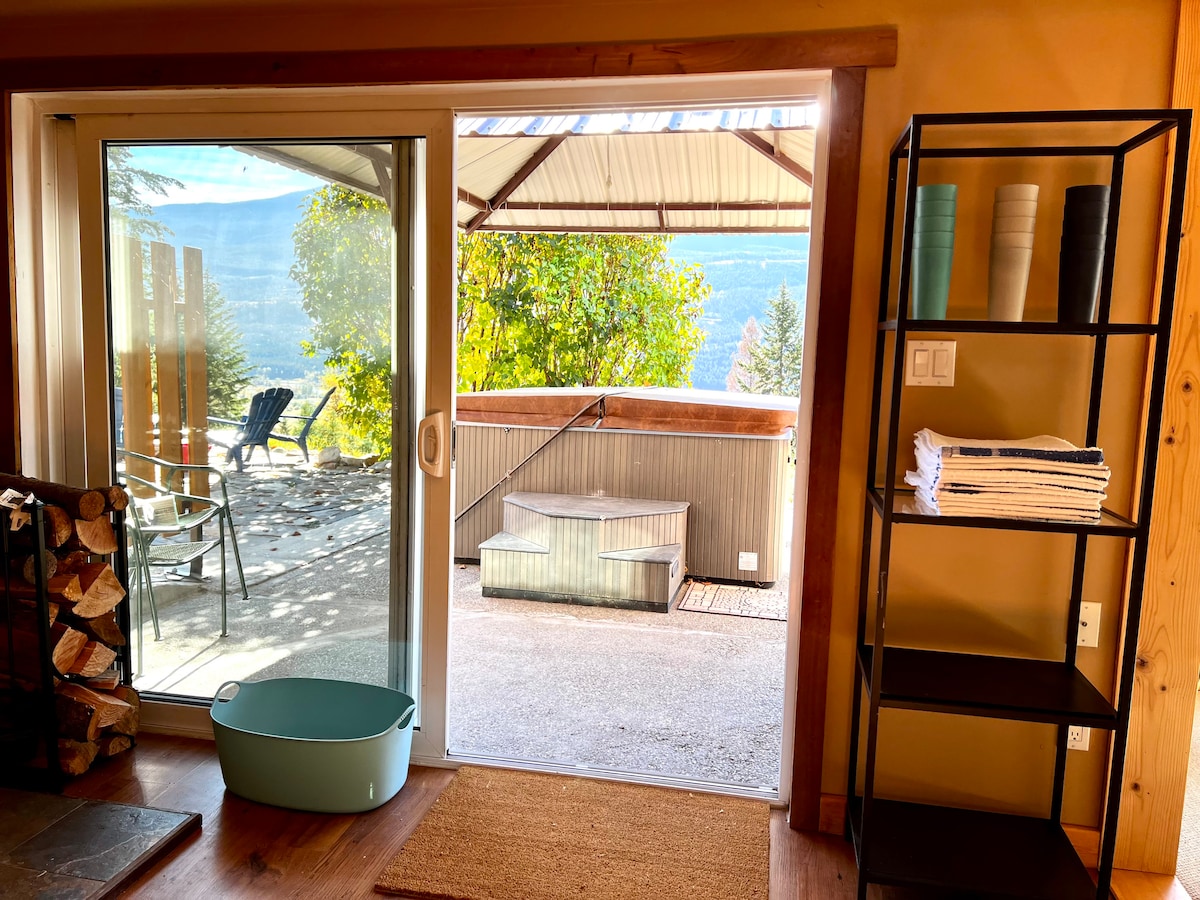 Welcome to The Kabin — your cozy mountain hideaway with sweeping mountain views! Nestled in the scenic Blaeberry Valley, just minutes from Golden BC and Kicking Horse Mountain Resort, The Kabin is the perfect base for couples, small families, or friends seeking relaxation and adventure alike. Built with care by a local artisan, this beautiful log cabin blends rustic charm with modern comforts — including your very own private hot tub for starry-night soaking and stunning mountain views.