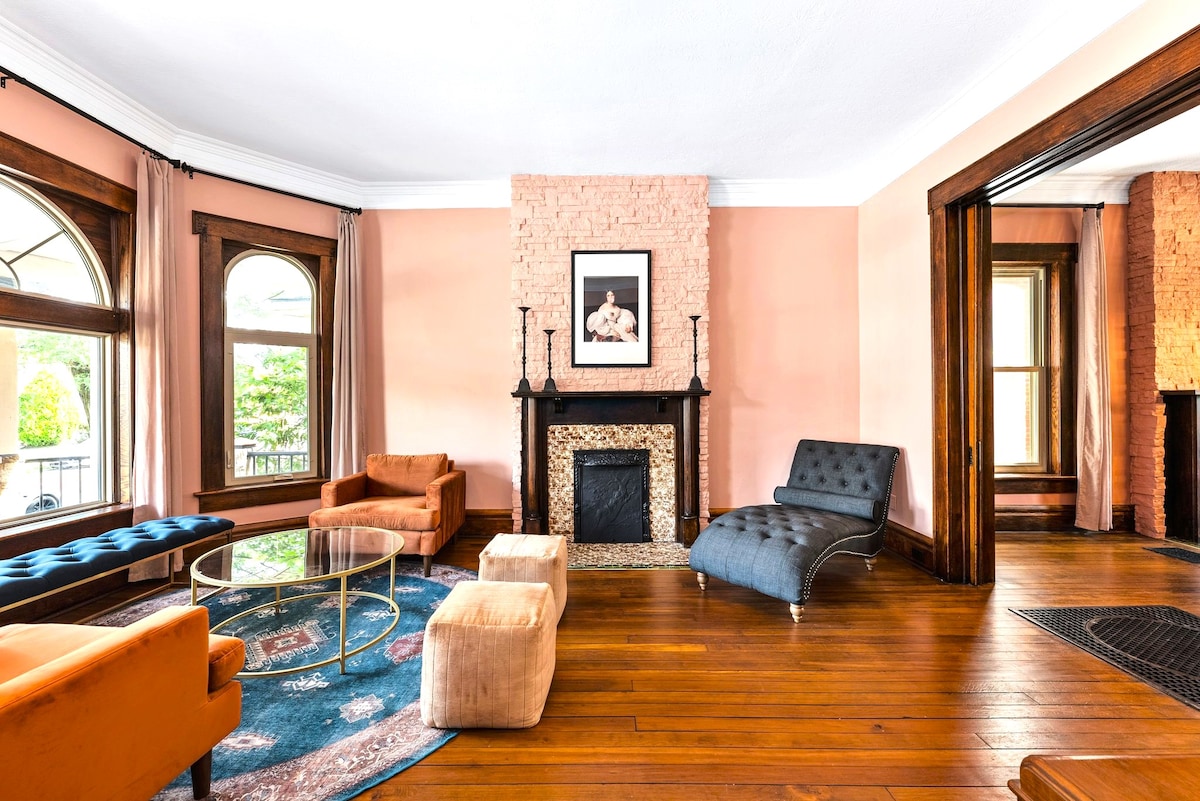 Welcome to The Century House, where history meets modernity. This charming 5 bedroom retreat boasts a playful yet sophisticated design with bold colors and unique accents. Enjoy a fully equipped kitchen and a breathtaking wall mural in this meticulously updated 100-year-old house. Perfectly located in the vibrant Short North neighborhood, with shops, restaurants, nightlife, and OSU just steps away. Book your stay now and experience the perfect blend of old-world charm and modern amenity.