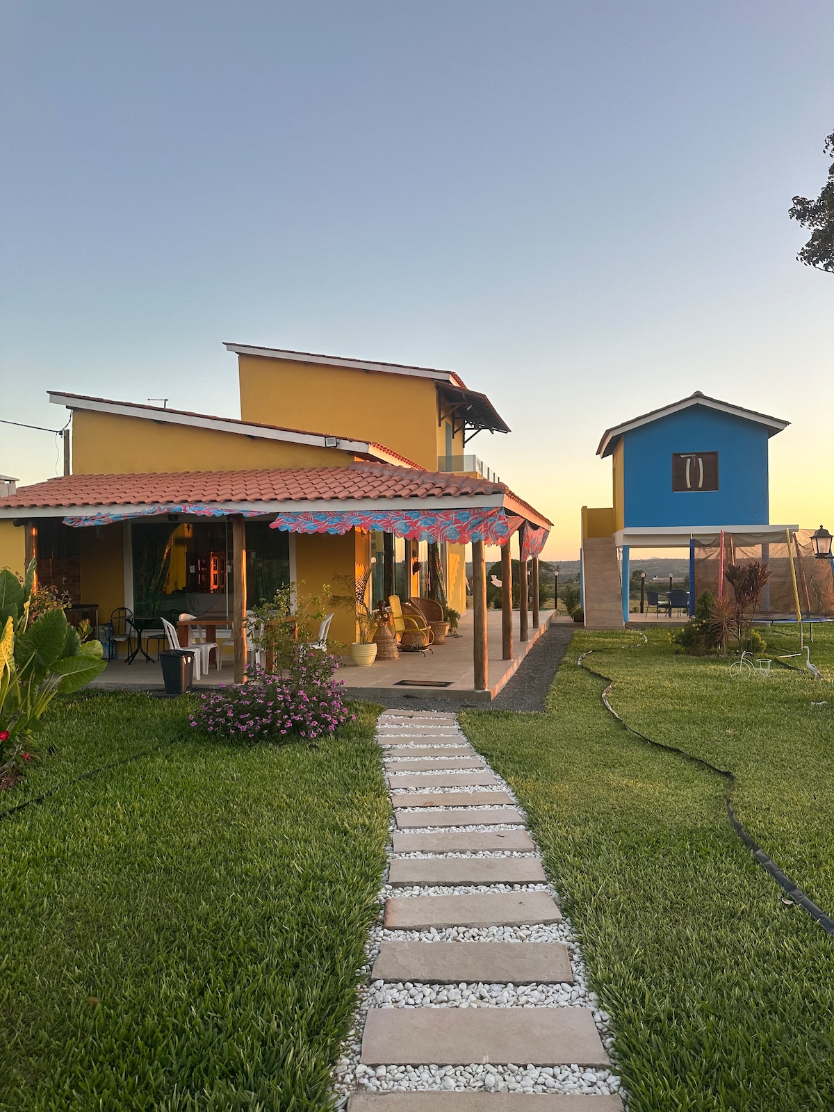 Relaxe com toda a família nesta acomodação tranquila. Aconchegante casa com suíte, ar-condicionado central, piscina privativa e parque infantil para a diversão dos pequenos. Ambiente seguro e tranquilo, com Wi-Fi, mini biblioteca e garagem para 3 carros. Espaço versátil e natureza ao redor. A 5 km de Conceição de Feira. Perfeito para descansar em família. Som alto não é permitido para respeitar os vizinhos