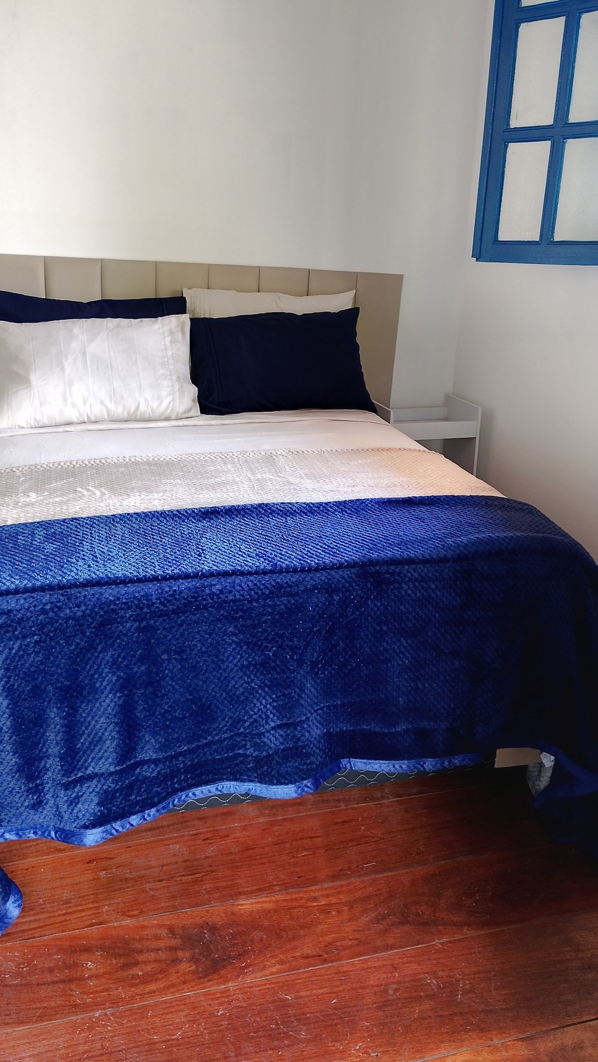 This is my little house in Tabuleiro, in the Conceição do Mato Dentro district. I offer two en-suites for weekends and seasons. They are located in the lower part of the house, with a separate entrance and a balcony with a front view of the Serra and Cachoeira do Tabuleiro. In the first en-suite, the bed is a double bed and there is a private bathroom. Between the two, we have a mini kitchen, equipped with a refrigerator, countertop with sink, microwave and electric stove. In the second, there are two single beds and a private bathroom.