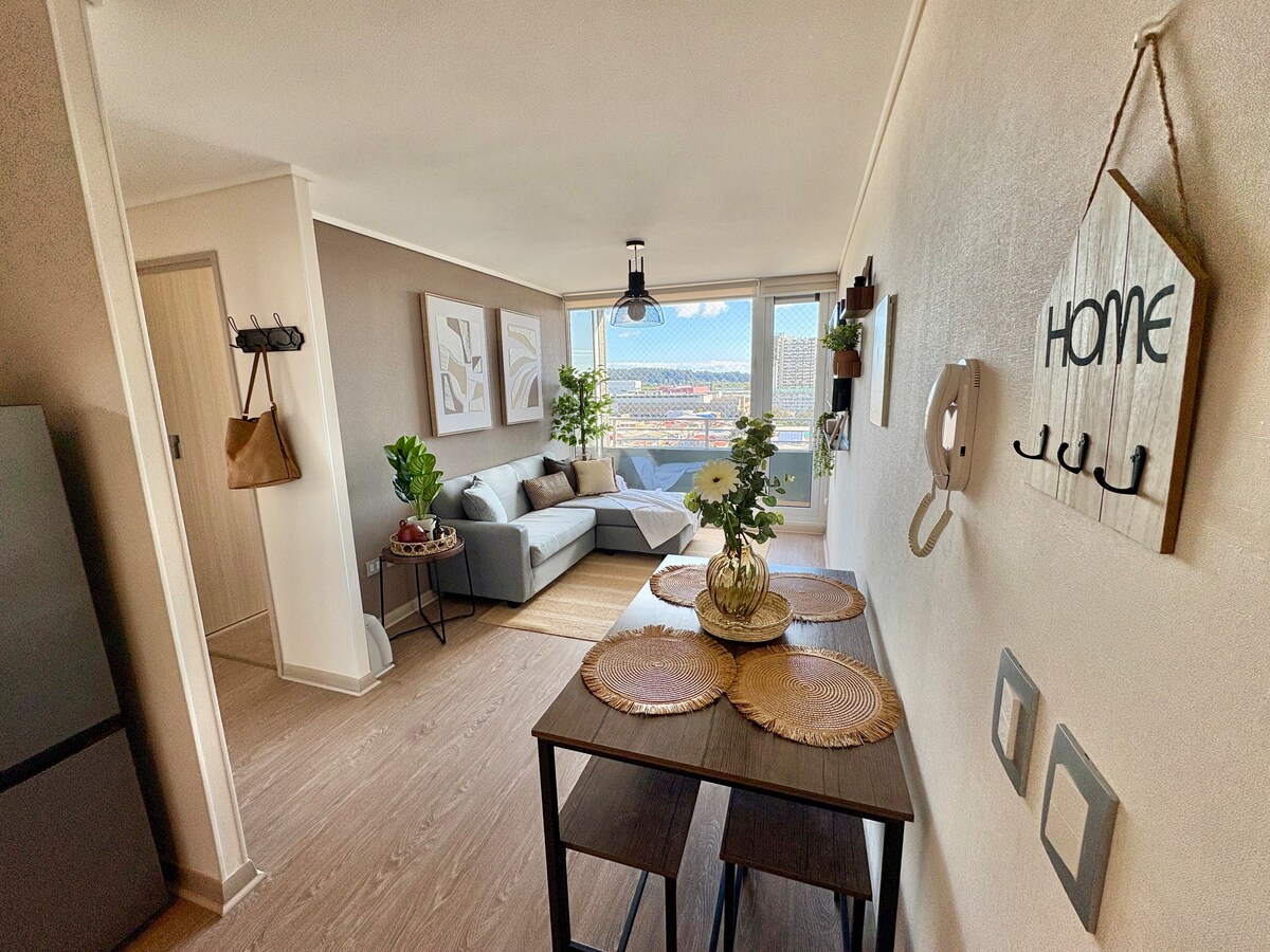Enjoy the experience of being steps away from downtown Concepción. With a new apartment, with all amenities, 100% equipped; on one of the city's main avenues. One block from Concepción's main green lung. Blocks from the University of Concepcion. Supermarket half a block away. Surrounded by cafes and restaurants. Quiet area. Building delivered at the end of 2022, modern and elegant. It has a balcony, gym, gazebo, laundry room and multipurpose room