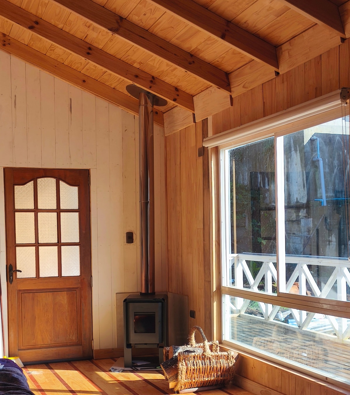 Un espacio pensado para conectar con la naturaleza y vivir momentos inolvidables. Disfruta del verde, la paz del campo y el ruido del estero. Preciosa cabaña campestre a orillas del estero poñén. Con tinaja y terraza con parrilla privada. Cuenta con una habitación matrimonial y otra habitación doble. Adicional un futón. Baño completo con agua caliente. Comedor y sala con estufa a combustión lenta. Cocina completa. Estacionamiento privado.