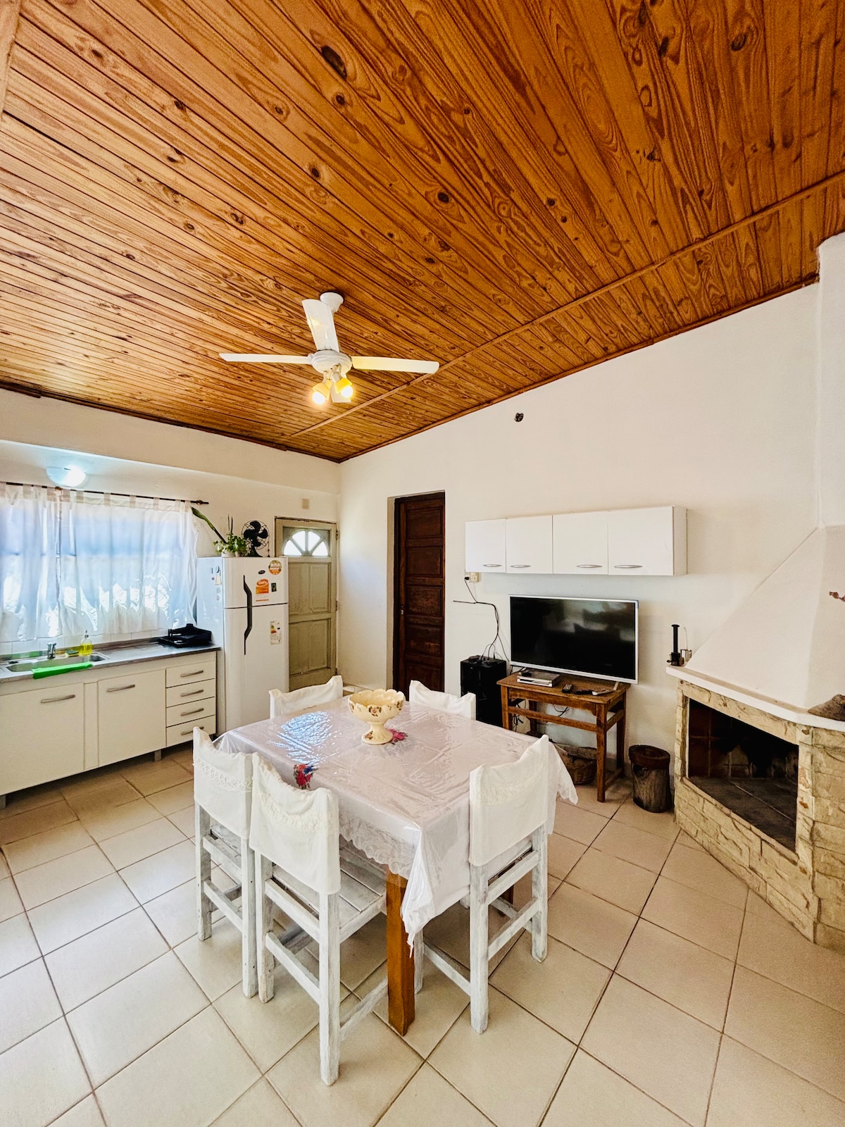 Large house in Jardines neighborhood of Termas Daymán. A quiet place to enjoy as a family. Green spaces with gardens, pergolas, garden sets (tables, chairs, lounge chairs, armchairs) Cold water pool, 8m in diameter with shower (enabled from November to April) with 3 defined bedrooms with AC. 2 with beds for 2 people, another with 2 for 1 person; plus 2 bunk beds. Large living-dining room integrated into kitchen with AC 2 bathrooms Outdoor security cameras Wi-Fi Cable TV Garage Separate utility room