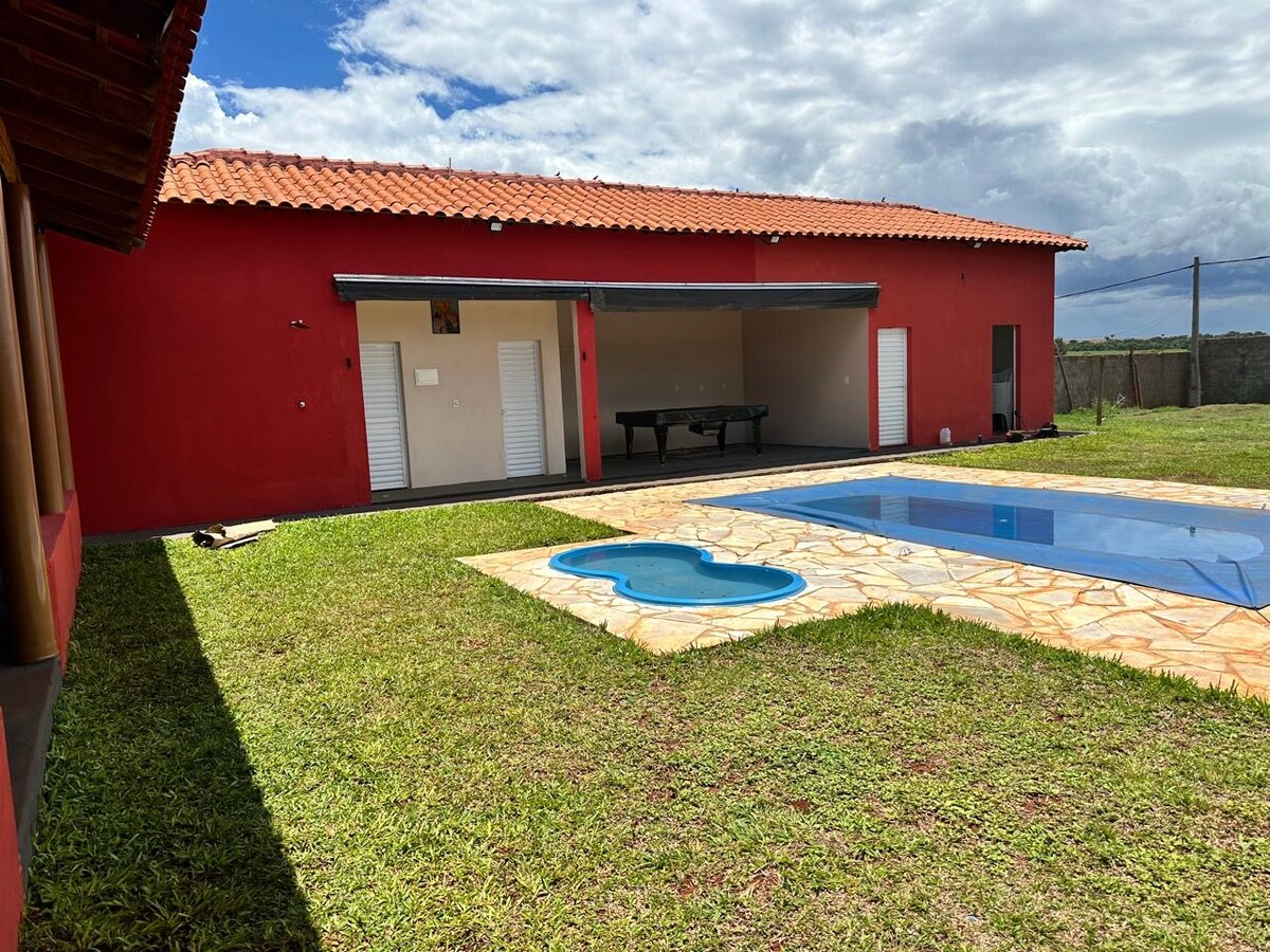 Bring the whole family to this great place with plenty of room to have fun. With a barbecue, swimming pool, shower, pool table and hammocks for resting, it is an ideal space to be with family and friends. In addition, the region has tourist attractions such as a waterfall and Peiropolis Park