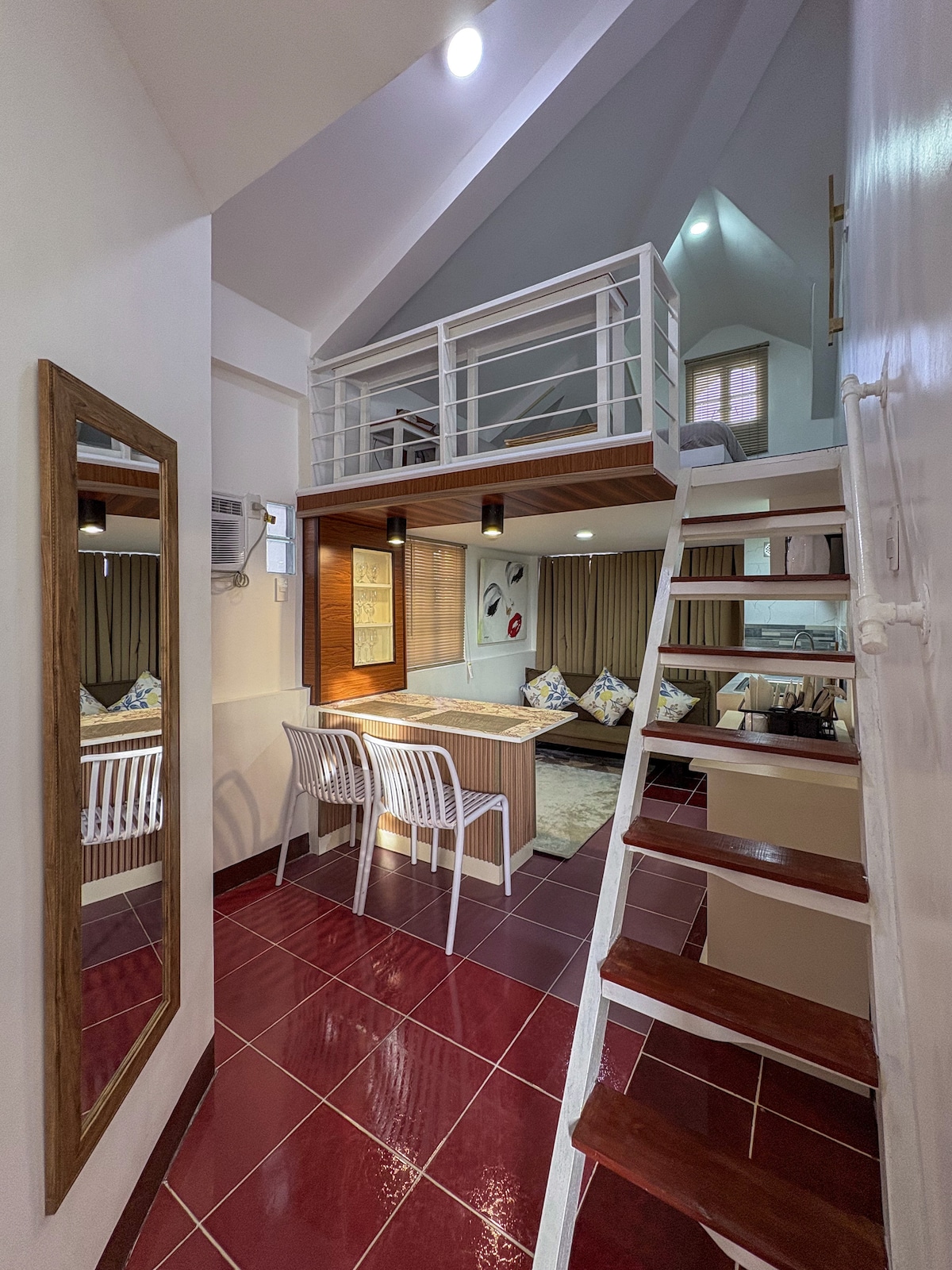 Immerse yourself in the heart of a highly urbanized city in the Central Visayas region. This unique place has a style all its own. A newly turned-over studio unit. It has everything that you need. A relaxing space after exploring the beautiful city of Cebu or visiting a relative nearby. It is within walking distance of Ateneo de Cebu. It's twelve minutes to SM City Consolacion and twenty-five minutes to the nearest beach in Liloan if traffic is not factored in.