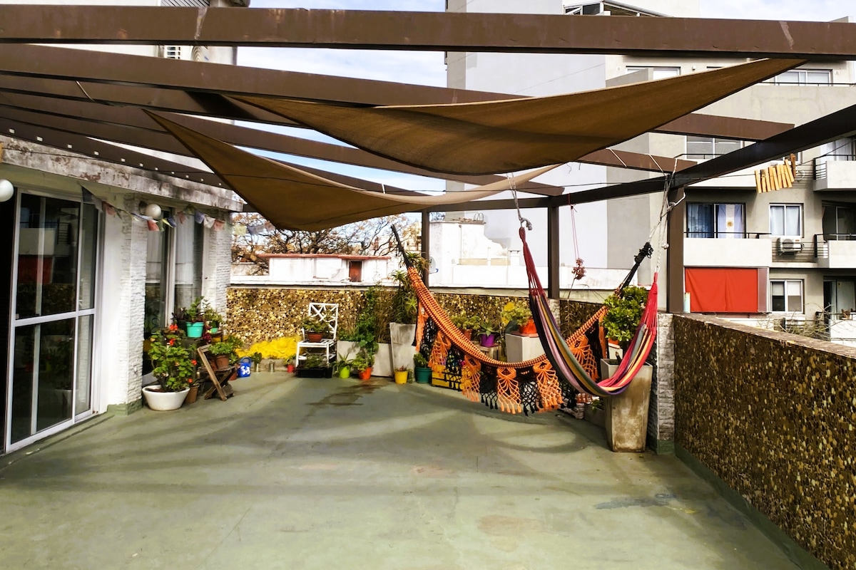 Toma una copa de vino al final del día en el balcón de esta simpática casita en el barrio de Colegiales. El espacio está construido sobre la terraza de una casa familiar a la que se accede por una escalera exterior de 16 escalones, compartiéndose la puerta de ingreso por el patio de la casa de la planta baja. En la terraza hay además otros espacios de uso privado de la familia. Es muy luminosa y cálida. Respetamos tu privacidad.