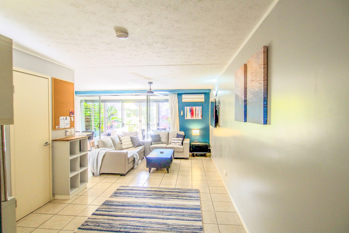Rainbow Beach - Beautiful, bright, high ceiling, beach vibe, 2 Bedroom holiday apartment with cool ocean breezes and manicure garden views from balcony. Resort facilities: *25m lap pool *Lagoon pool with BBQ and jacuzzi *Tennis court . *2x Table tennis tables Take a 5 minute drive to the town, 10 min walk to beach or an easy 20 min walk to the Rainbow Beach town via the beach or road, with a fantastic Surf Club (super view from deck), many restaurants & cafes, shops.