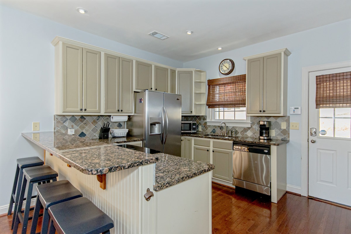 This is an ideal place to bring your family or group of friends (up to 8) - swim at the pool or the lake, and you can rent the onsite boat if you'd like. This 4 bedroom/3.5 bath house can easily accommodate 2 families and their kids. The master suite is on the main level and offers the comfort of a king bed. The kitchen is well appointed if you choose to stay in or there are several restaurants within a 10-15 minute drive.
