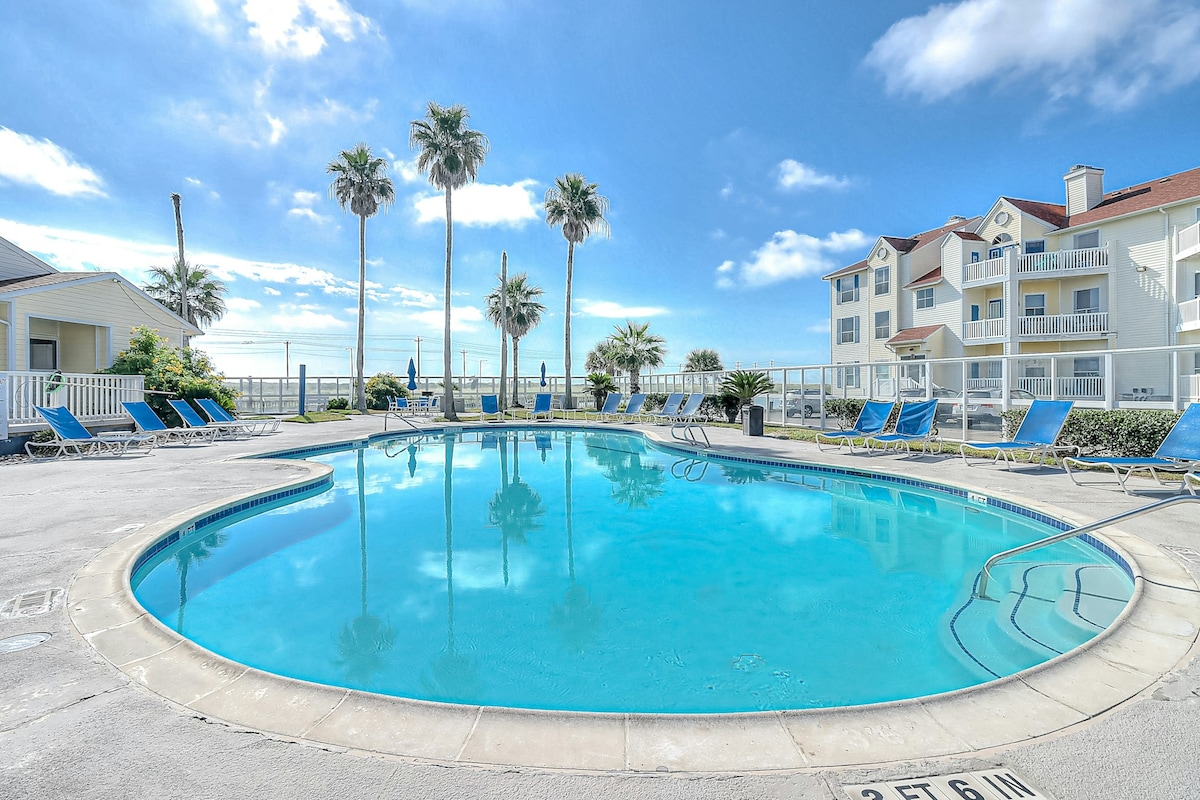 Newly remodeled first floor studio on North Padre Island only 5 minutes walking distance to the beach. This cozy unit features a king size bed and pull out sofa for sleeping accommodations of up to 4 guests. Within the unit you will also find kitchen, bath, dining and living spaces. There are many shared condominium amenities to include pool, hot tub, sauna, gym, laundromat, bbq and more.