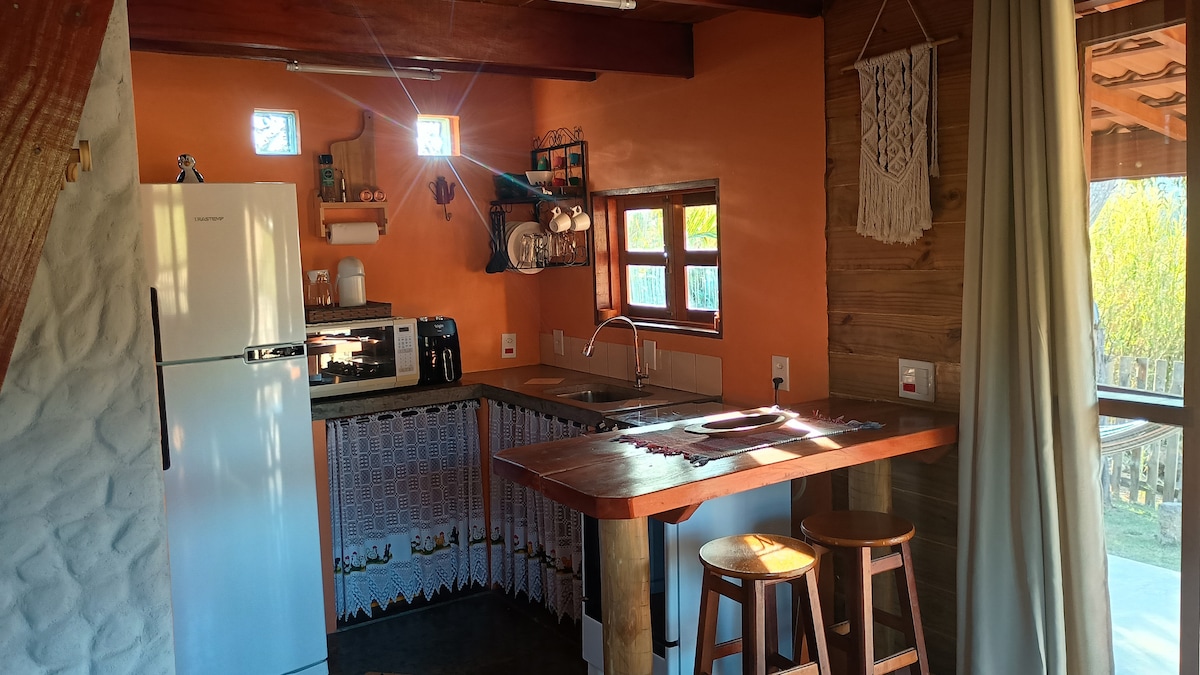 Welcome to Cabana Portal das Araucárias, in Serra da Mantiqueira, at an altitude of 1600 meters. Perfect for resting or celebrating a special date for two. Relax in the bathtub, enjoy the fireplace, sunset and amazing view and stars. Our equipped kitchen allows for special moments. Slow down, catch up on your series, and enjoy the moment. You'll receive an exclusive guide to the region, with nearby restaurant and overlook options. Good surprises await you! Your Pet is Welcome.