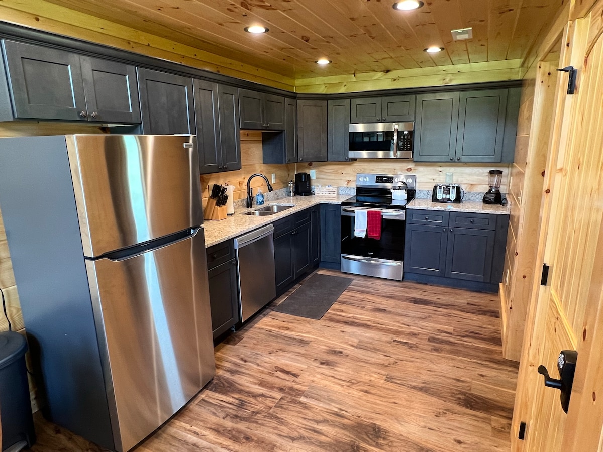 NO PET FEE! TEN MINUTES TO NATIONAL PARK! Brand new secluded 2br/2ba cabin on an acre of land TEN MINUTES to the Smoky Mountains National Park entrance. Features a hot tub, electric fireplace, arcade game loft, large yard with fire pit and yard games (cornhole, horseshoes), and gorgeous views of Mt. Cammerer from inside and out. The home contains a full kitchen with brand new appliances, open floor plan with vaulted ceilings and sweeping views, two king sized beds plus a pull