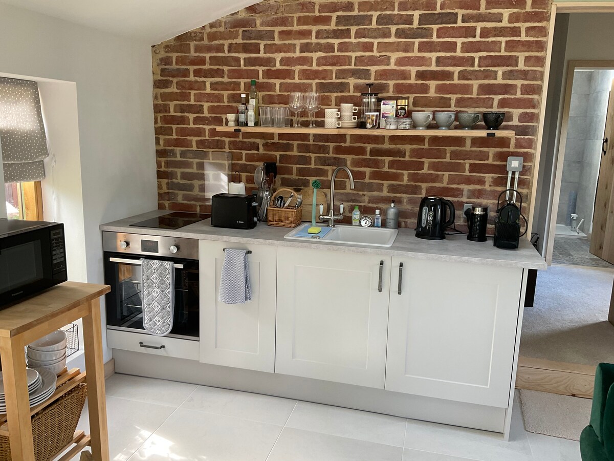 A stylish one-bedroom barn adjacent to a stream.
