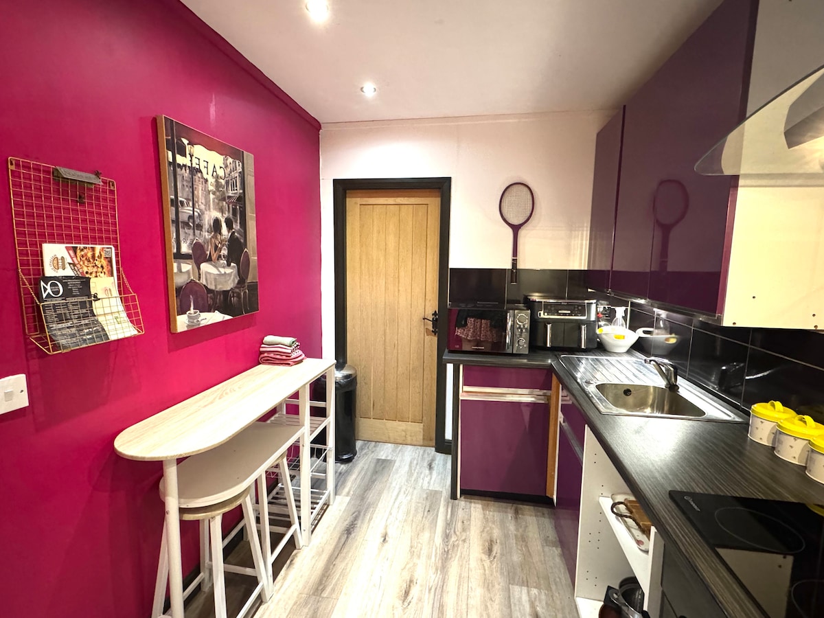 One bedroom flat with private entrance and exclusive-use hot tub, just 10 minutes walk from Ramsbottom’s vibrant town centre, packed with shops, restaurants, and the heritage railway. Enjoy nearby panoramic countryside walks and explore all Greater Manchester has to offer. Ideal for couples or solo travellers. Includes a double bed, full kitchen, WiFi, TV, washer/dryer, central heating, and secure parking. M66 is 5 mins away; Manchester in just 30.