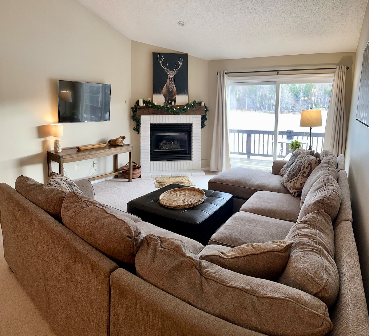 Get away to the beauty of New Hampshire’s White Mountains! Hike or fish, dine or explore, snowmobile or ski- or stay in and enjoy the view from the wall of windows. Located only three miles from Santa’s Village and within 20 miles of Mount Washington and Breton Woods, the 3-bedroom house offers rustic modern styling, queen-sized bunk beds and gas fireplace. The large deck and open cathedral floor plan provide the comforts of home within view of the White Mountains.