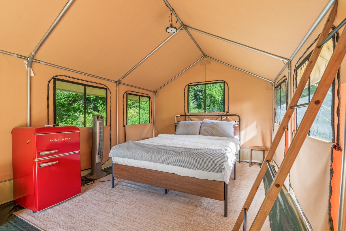Heron On the Hill Glamping is all the fun of camping with all the convenience of a hotel. You will have your own beautiful canvas tent everything is set up for you on arrival. Relax by the Firepit at your site or wander the property play a game of volleyball if you have a group or try your hand at corn hole We have an 18 hole mini golf free to play. If you like hiking we are directly across from Stone Church with hiking trails, a cave and waterfall
