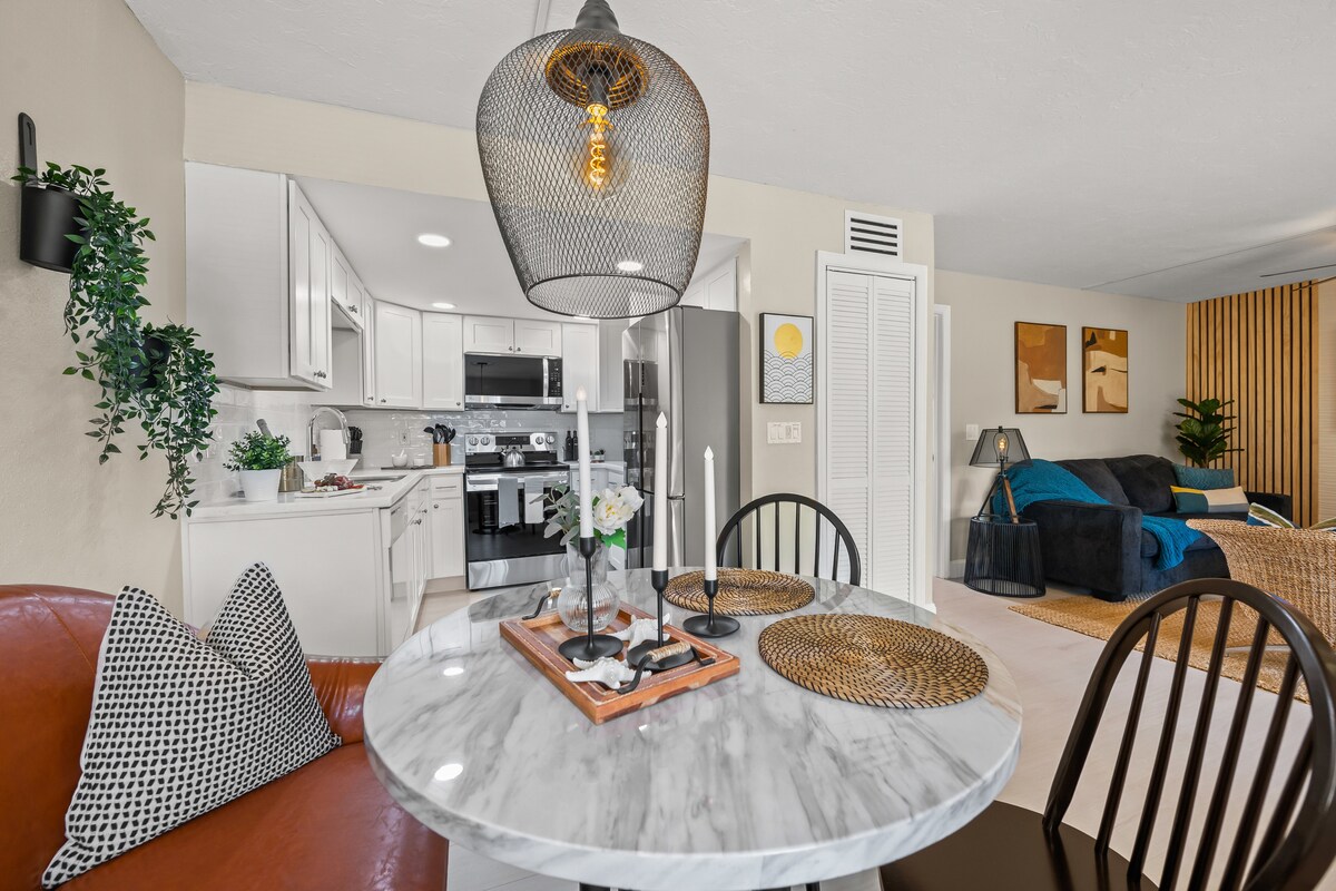 Welcome to Mi Casa Siesta on Siesta Key, the #1 beach in the country! Gorgeous newly renovated one-bedroom condo within a 5 min walk to the powdery white sandy beach and stunning sunsets. Also next to restaurants, bars, kayak & jet ski rentals, and much more! Contact for monthly rentals available. Experience this modern oasis: • Chic Living Room • Quartz Kitchen Countertops • King Size Mattress • Beach gear • Wifi • Private Parking • Smart TVs • Screened-in Patio • Coin Laundry room on premises