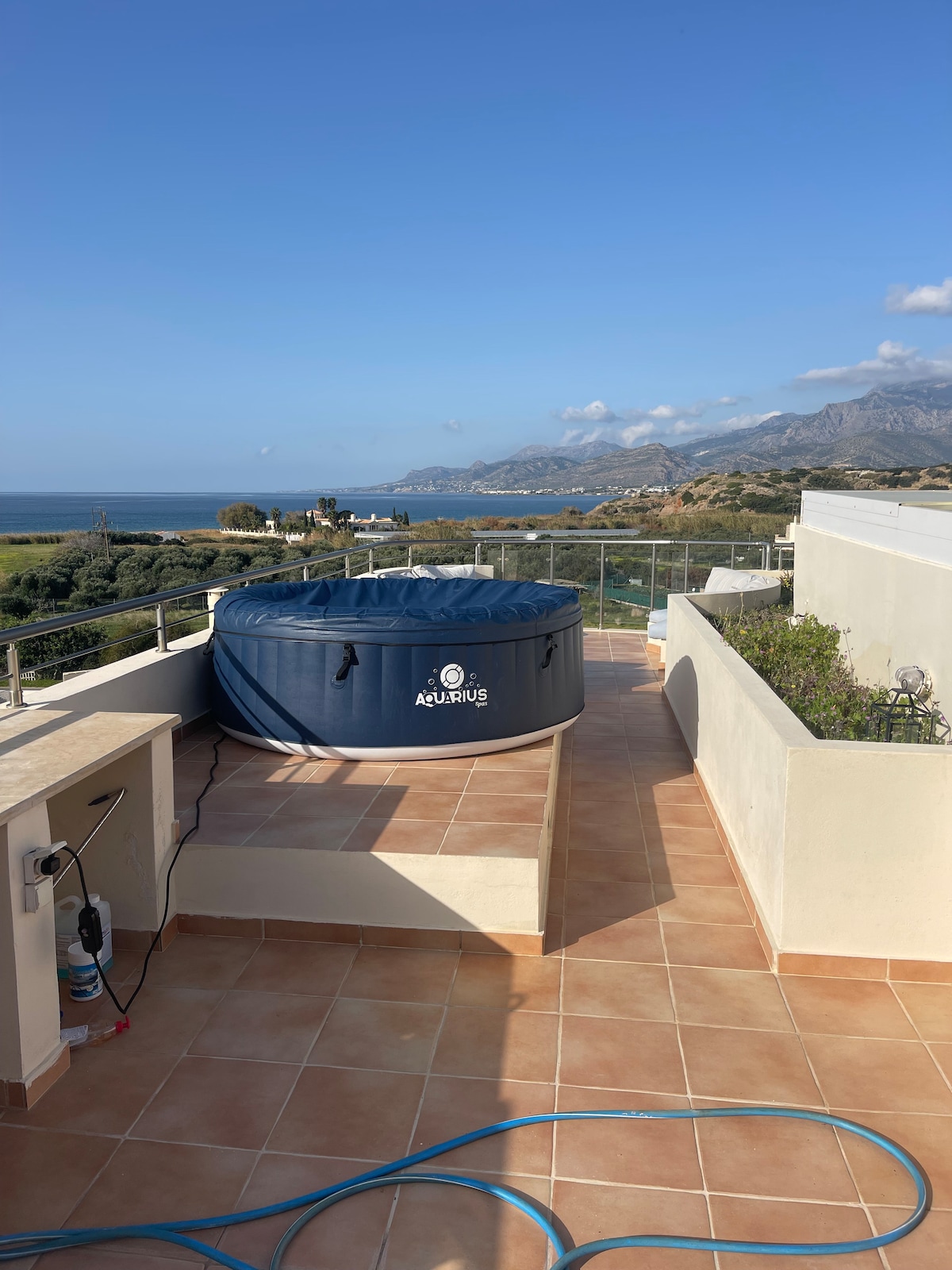 Every room has an unobstructed sea view. The terrace is fully private — just you and the ocean. Below, a natural stone pool carved by the sea, with a freshwater shower beside it. No crowds, no vendors — locals swim here at sunrise. Quiet, safe neighbourhood. Few min to bakery & shops around, 15 min to Chania Old Town. Free parking at the door. Beach bags, towels & welcome basket included. Green Pass certified electricity. Superhosts for 4 years. Self check-in. Celebrating something? Tell us.