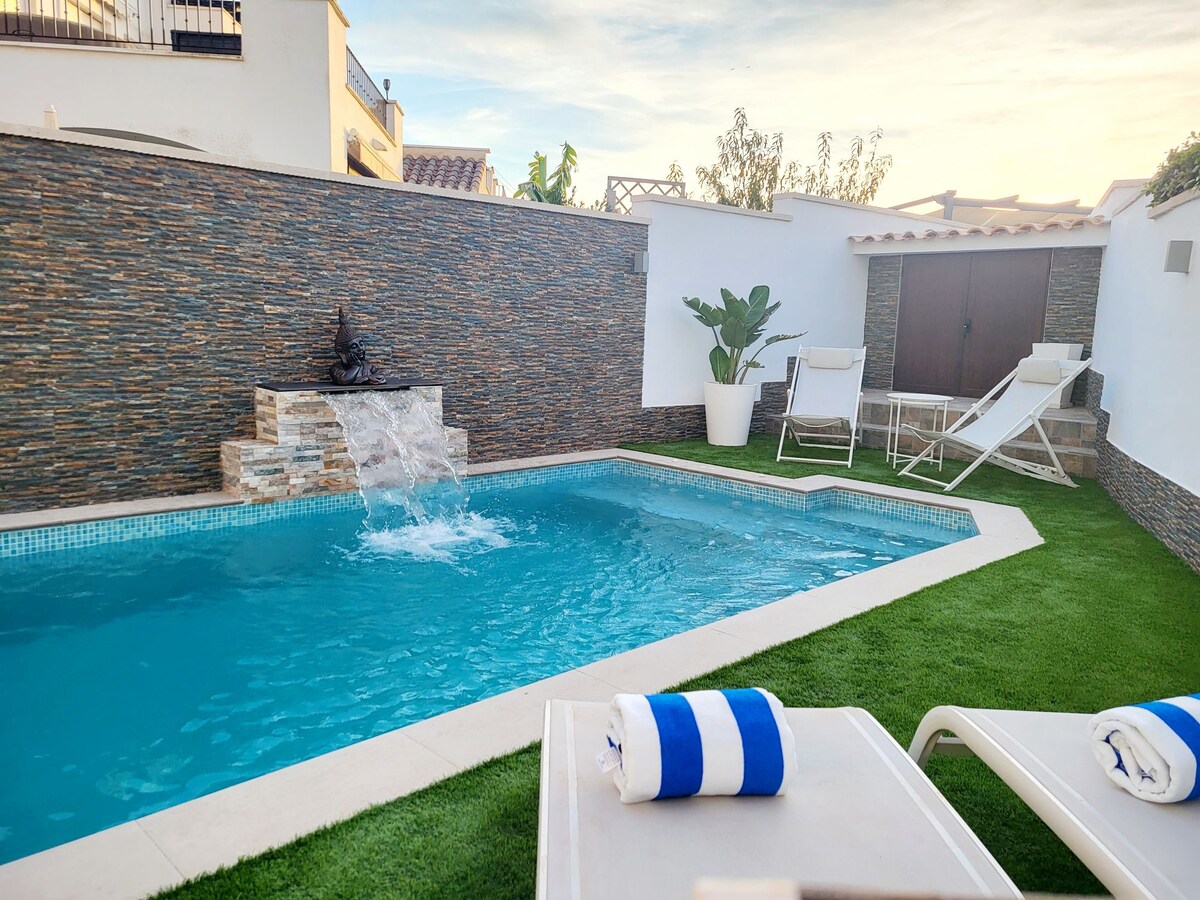 Private Luxury Villa Tropical Garden With Waterfall, large Pool, Full outdoor kitchen with seating area, Bar , BBQ, jacuzzi chill area, Rated best location in Torrevieja close to Beach, Waterparks, Bars & Restaurants, just 5 mins walk to Sea the beautiful ( Salt Lakes ) Your family will be close to everything when you stay at this centrally-located place Nature reserve featuring salt lagoons known for pink lakes. if 13 or more guests we will add more beds to the rooms. will need notice.