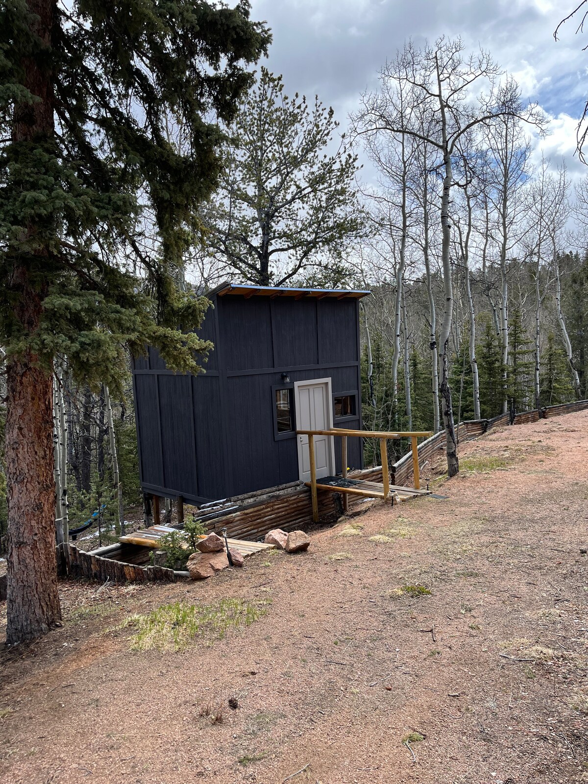 Escape to our modern cabin in the Pikes Peak region. Enjoy mountain views, a hot tub, and a large deck surrounded by aspen and pine trees. This private property has been newly renovated and boasts a large flatscreen TV and high-speed Starlink internet. Experience the magic of nature as you spot big horn sheep and other wildlife. Relax by the fire pit under a starlit sky. With its serene ambiance and new renovations, this property offers the perfect mountain getaway.