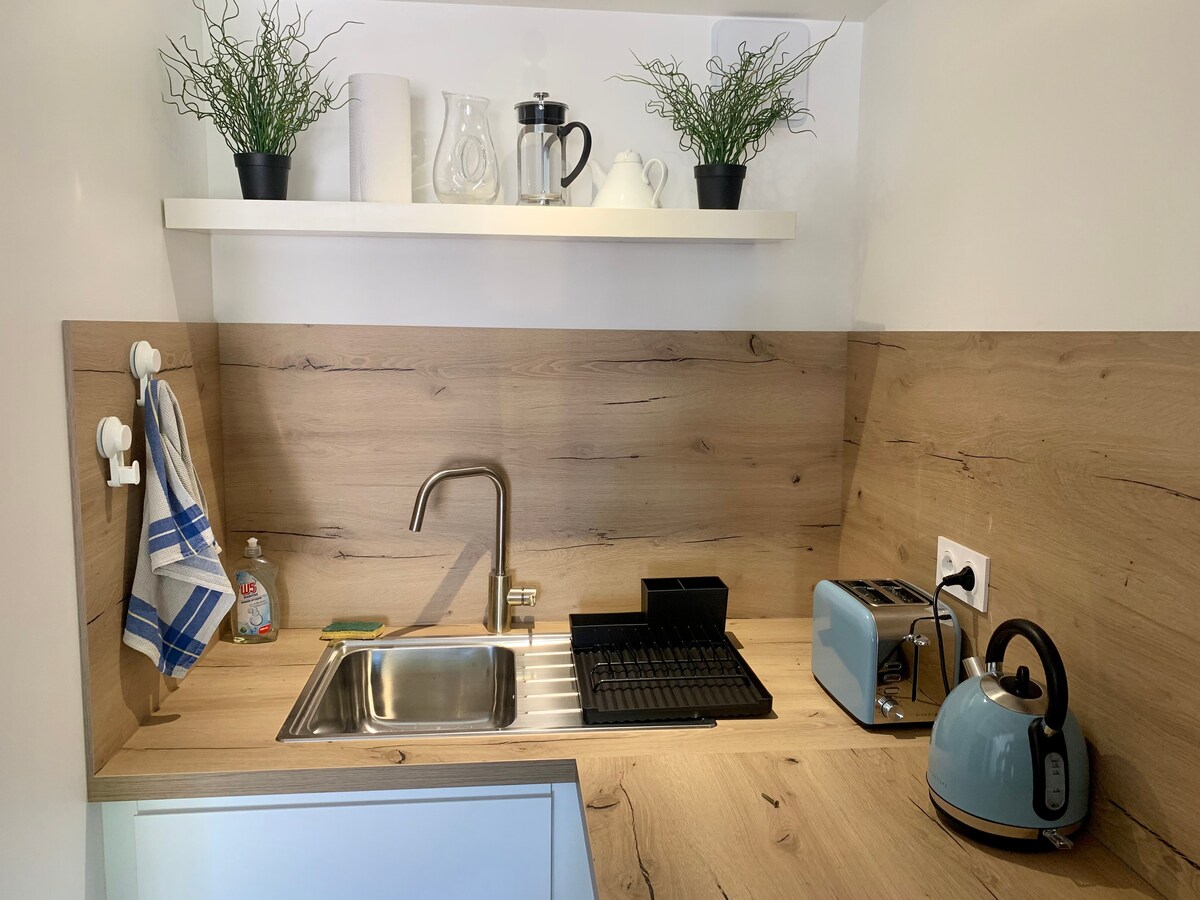 Apartment/studio on the ground floor in a charming house at the entrance to the old village. New apartment/studio with the necessary comfort for a pleasant stay in all seasons. It consists of a separate bathroom (6 m2) with shower, sink, wall-mounted toilet, towel dryer/radiator and washing machine. A 32 m2 main room with equipped kitchen, living room with sofa bed, TV and Wi-Fi and a sleeping area with double bed. Towels, bed linens provided, pellet stove heating