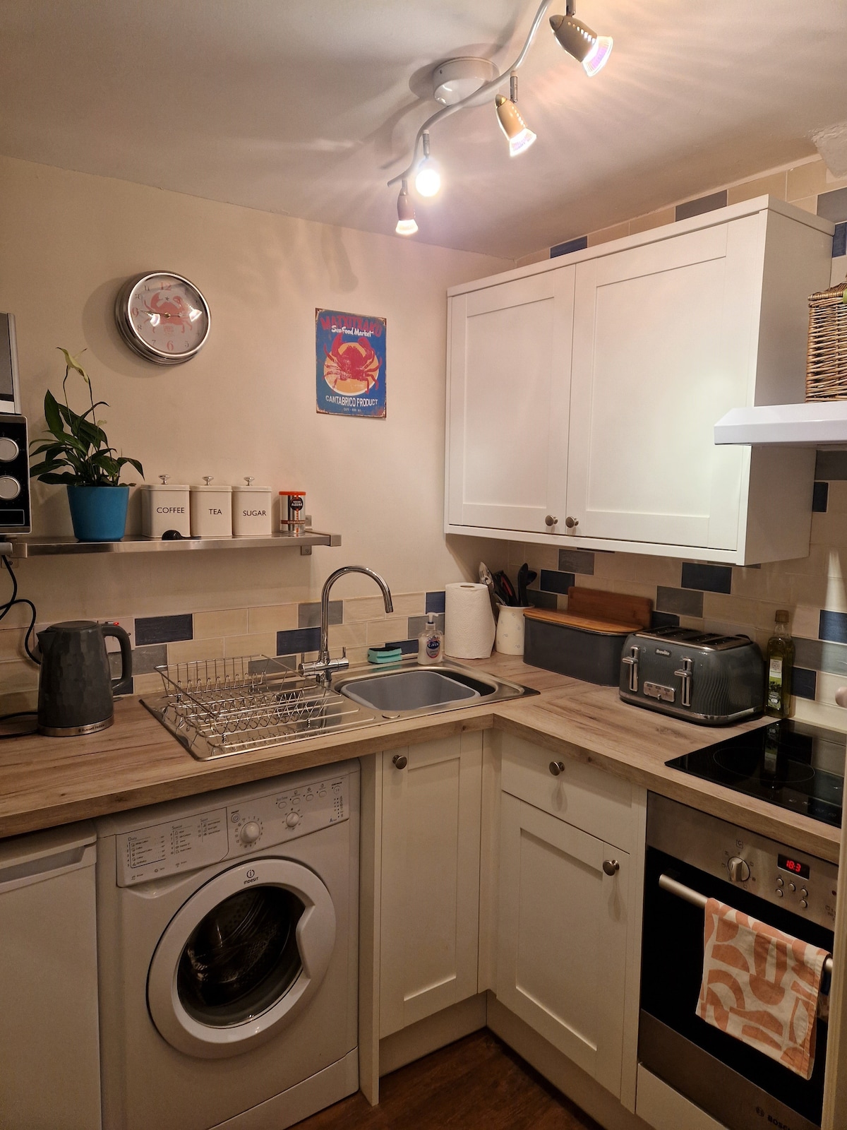 “A Pebble’s Reach” is a quirky one bedroom flat which forms part of what was once a fisherman’s cottage in Garden Street which leads down to Cromer Pier and the beach. This busy little street has independent shops, a pub, cafes and takeaways. Although the building itself is over 200 years old the decor is bright and colourful and is inspired by the contemporary nautical artwork on the walls. Ideally situated to visit shows on the pier, take long beach walks, and explore further along the coast.
