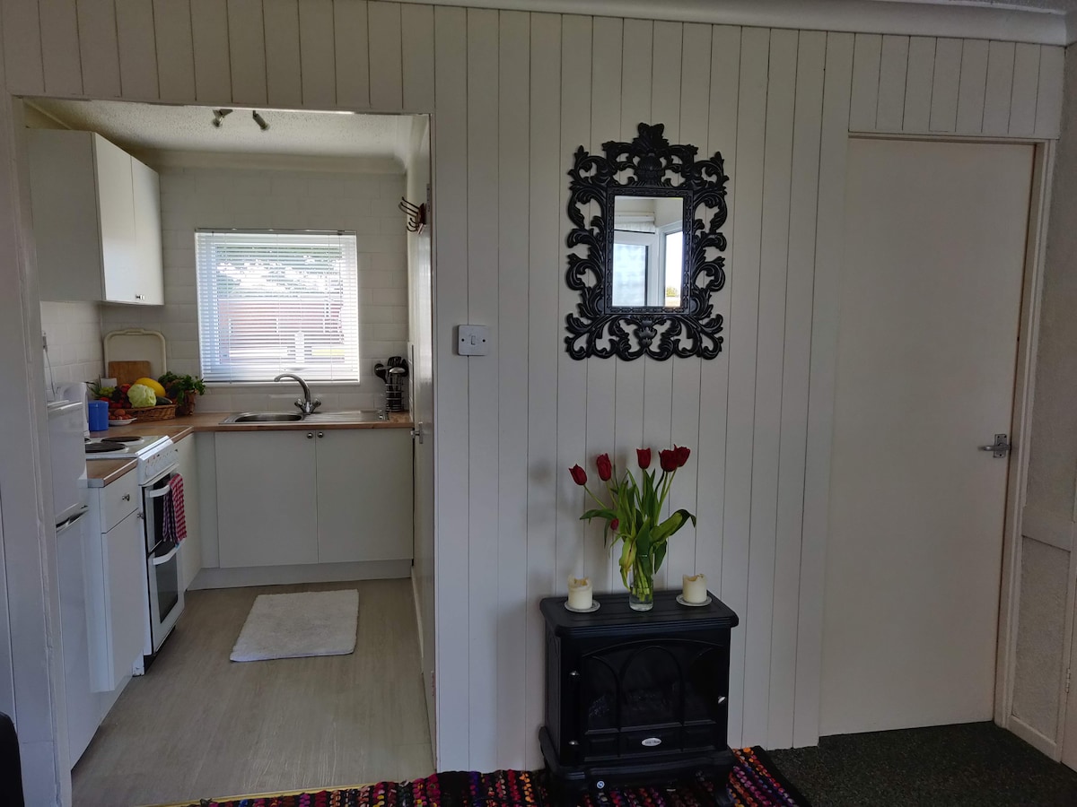 A compact & cosy chalet with a clean, modern, beachy feel. Fully renovated in early 2021, it’s equipped with a fitted kitchen including double oven, built in microwave & a modern bathroom with new electric shower. There’s new flooring throughout, it’s been rewired & re-plastered, so ready to welcome you for a holiday or short break! The double bedroom & bunk bed room make it perfect for a family trip to the seaside. Just cross the road & down the cliff path to the beach, & a shop close by.