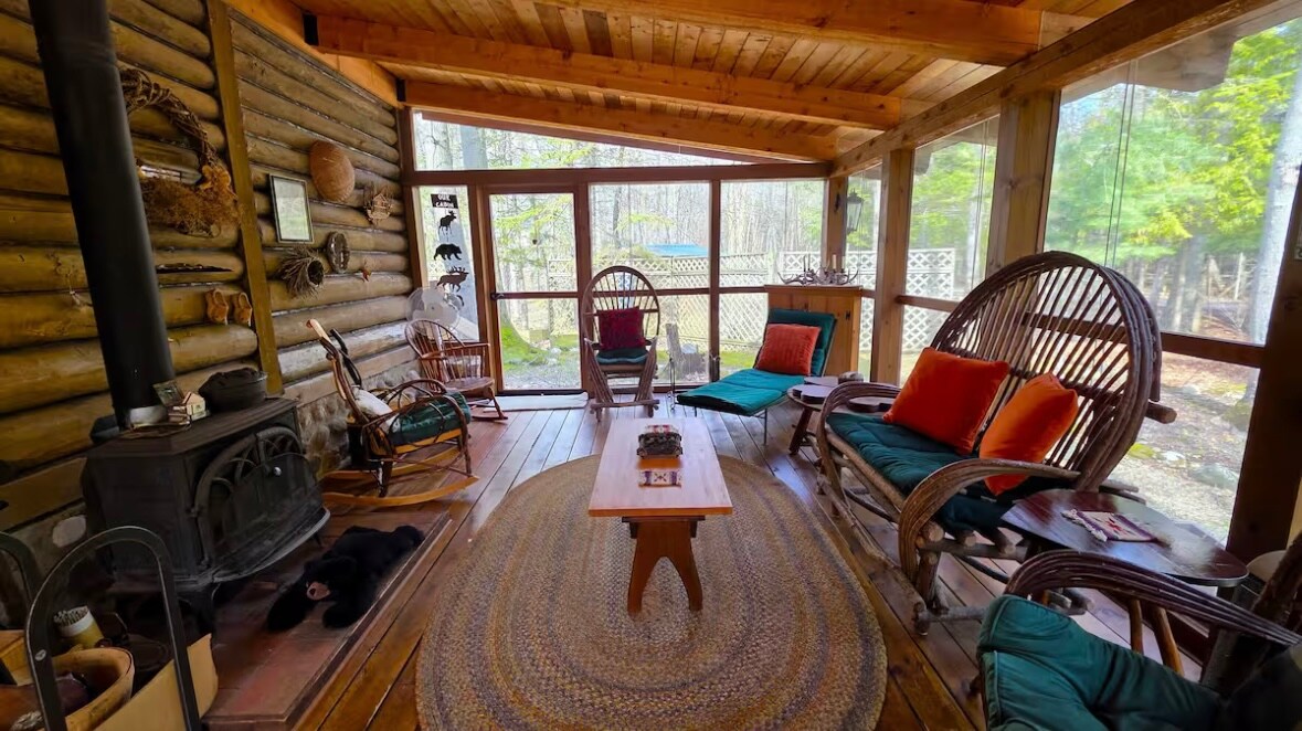 Enjoy the coziness of a bygone era while staying in this 1940s quaint, storybook log cabin. The Hawks Nest has been lovingly restored to its original glory while having all the modern-day amenities woven through its clean 380 sq. ft. space. Retreat to the spacious covered porch to relax and view the acre-and-half property leading down to 100ft of 6Mile Lake frontage. Star gaze while relaxing in the comfortable, Amish-built gilding chairs around the spacious, paver fire pit area .