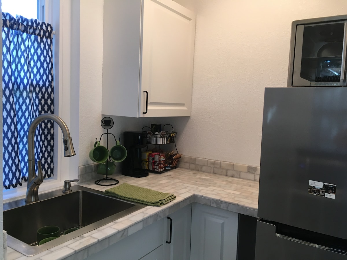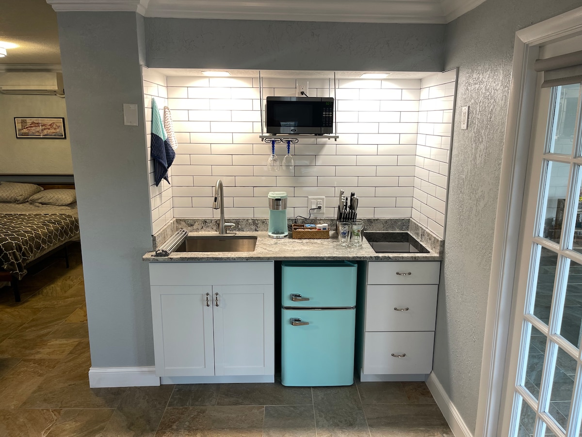 Escape to your private Palm Harbor oasis! This updated studio features a cozy queen bed, sofa bed, and kitchenette, plus a sparkling in-ground pool reserved just for guests. Walk to the Gulf for fishing, boating, or paddleboarding, or hop on the nearby Pinellas Trail for biking and exploring. Enjoy beaches just minutes away, along with amazing dining, breweries, and live music in historic downtown. Pet-friendly, with keyless entry and free cleaning for 14+ night stays.