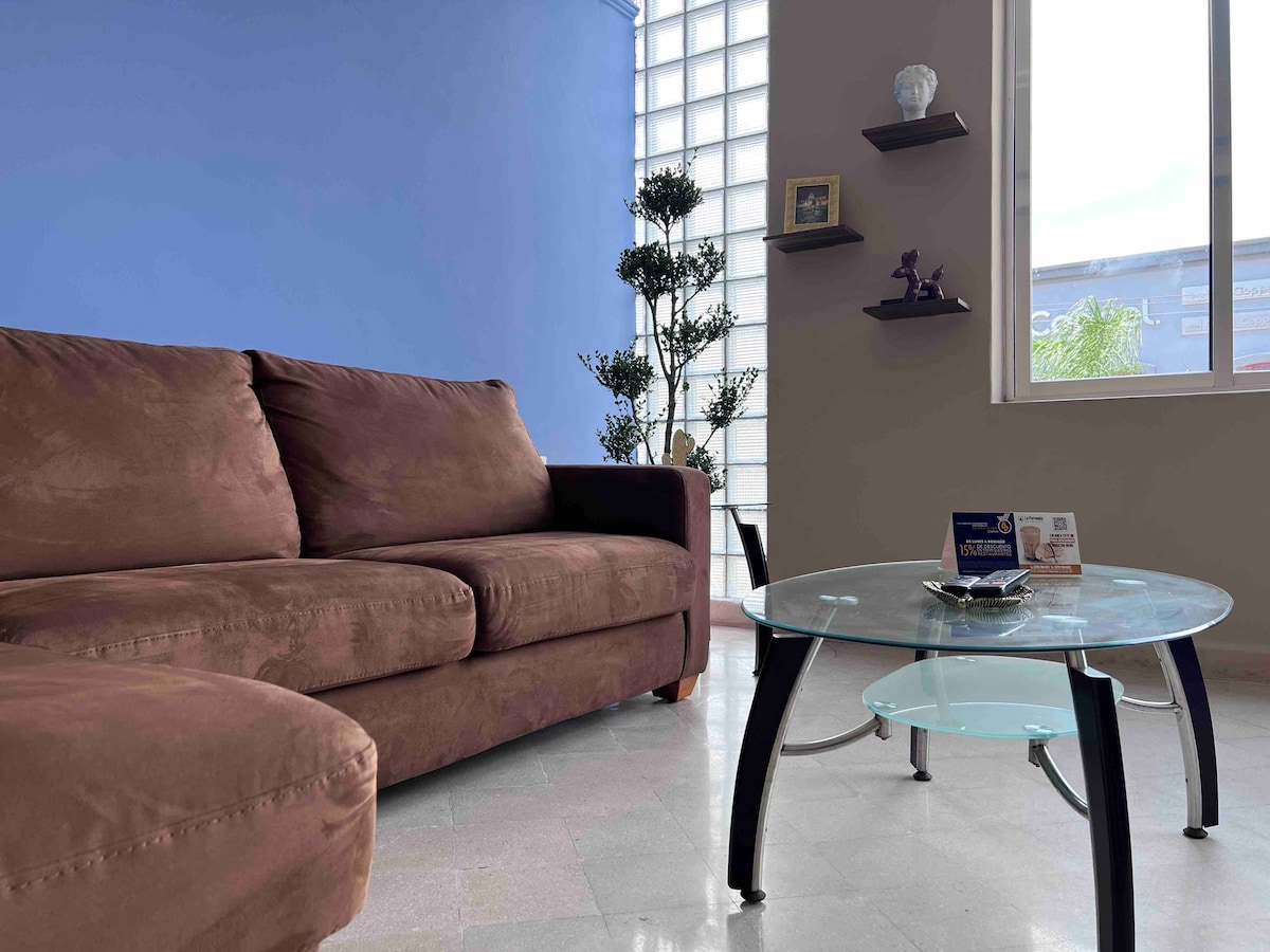 Hospédate en un departamento estiloso y funcional recién construido que ofrece diseño contemporáneo, confort y ubicación privilegiada. A solo minutos del Cerro del Borrego Ecoparque y del Parque Alameda, este espacio en planta baja con patio compartido es perfecto para disfrutar de Orizaba entre naturaleza y cultura. A pocos metros tienes acceso a una parada de autobuses, entre ellos el “Gallo”, que recorre la ciudad gratis y conecta con sus principales atractivos turísticos.