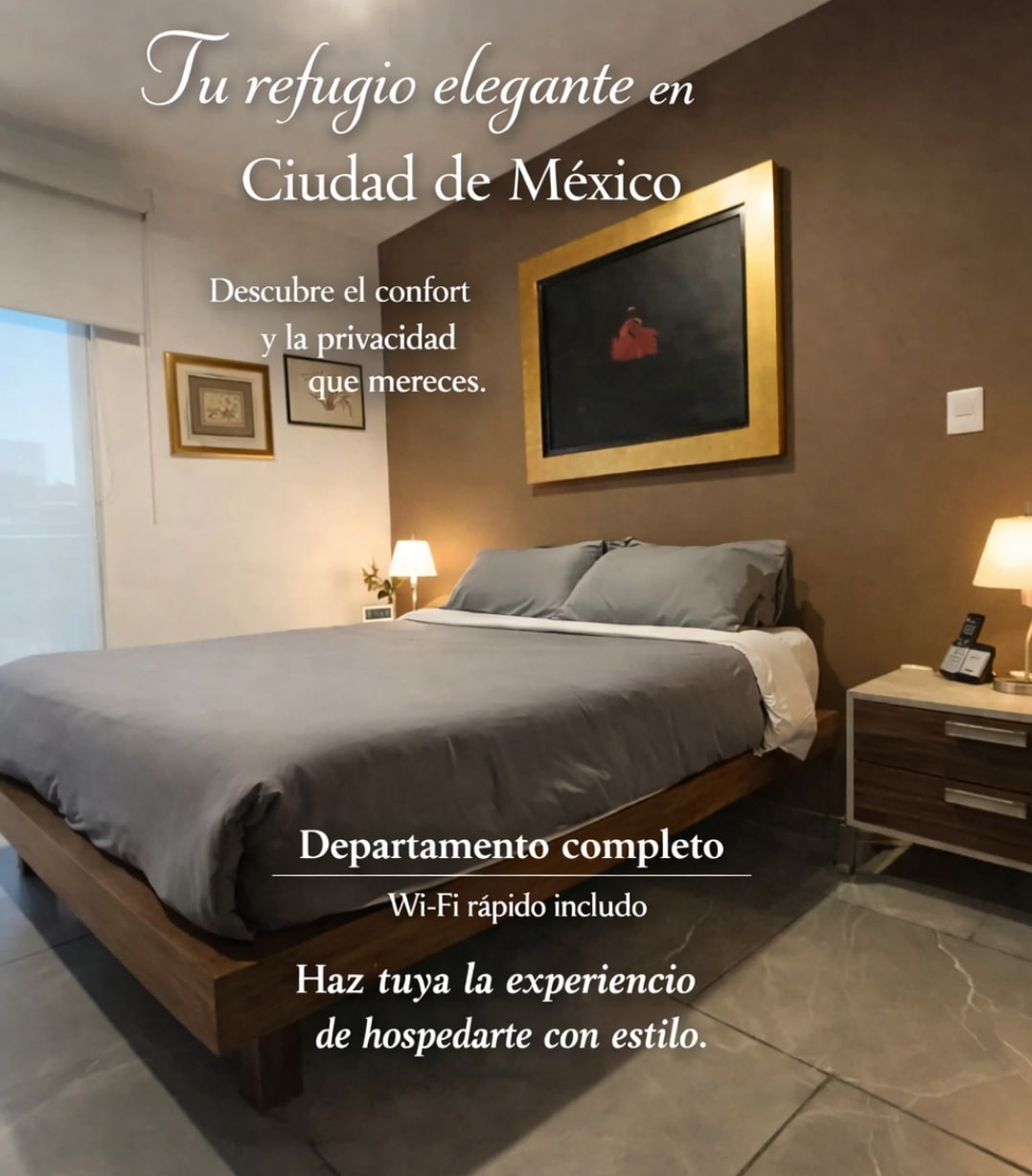 🏙️ 🌟 Luxury 3-Bedroom Penthouse Duplex with huge private terrace and panoramic view. Premium amenities include a gym, pool, steam room, kids’ playroom, EV charger, and rooftop jogging track. Bright, modern space with smart TVs, designer office, and telescope. Steps from Coyoacán, near Subway Line 12 and the Olympic Gym, a 20-minute walk to the Frida Kahlo Museum. Quiet, well-connected area. A short drive to Estadio Azteca—perfect for families, professionals, and World Cup fans. Sleeps up to 8.
