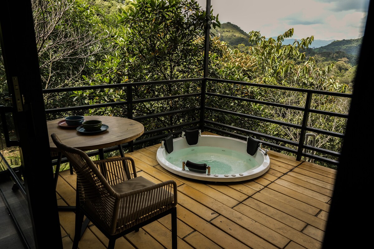 Two hours from Bogotá on the Bogotá-Sasaima road, live the unique experience of staying in a tree eight meters high. Wake up to the chirping of birds and fall asleep to the sound of the stream below. Enjoy a five-star suite with all the amenities in the branches of the trees. The cabin has hot water, a mini-fridge, and the most spectacular view. Delicious breakfast included!