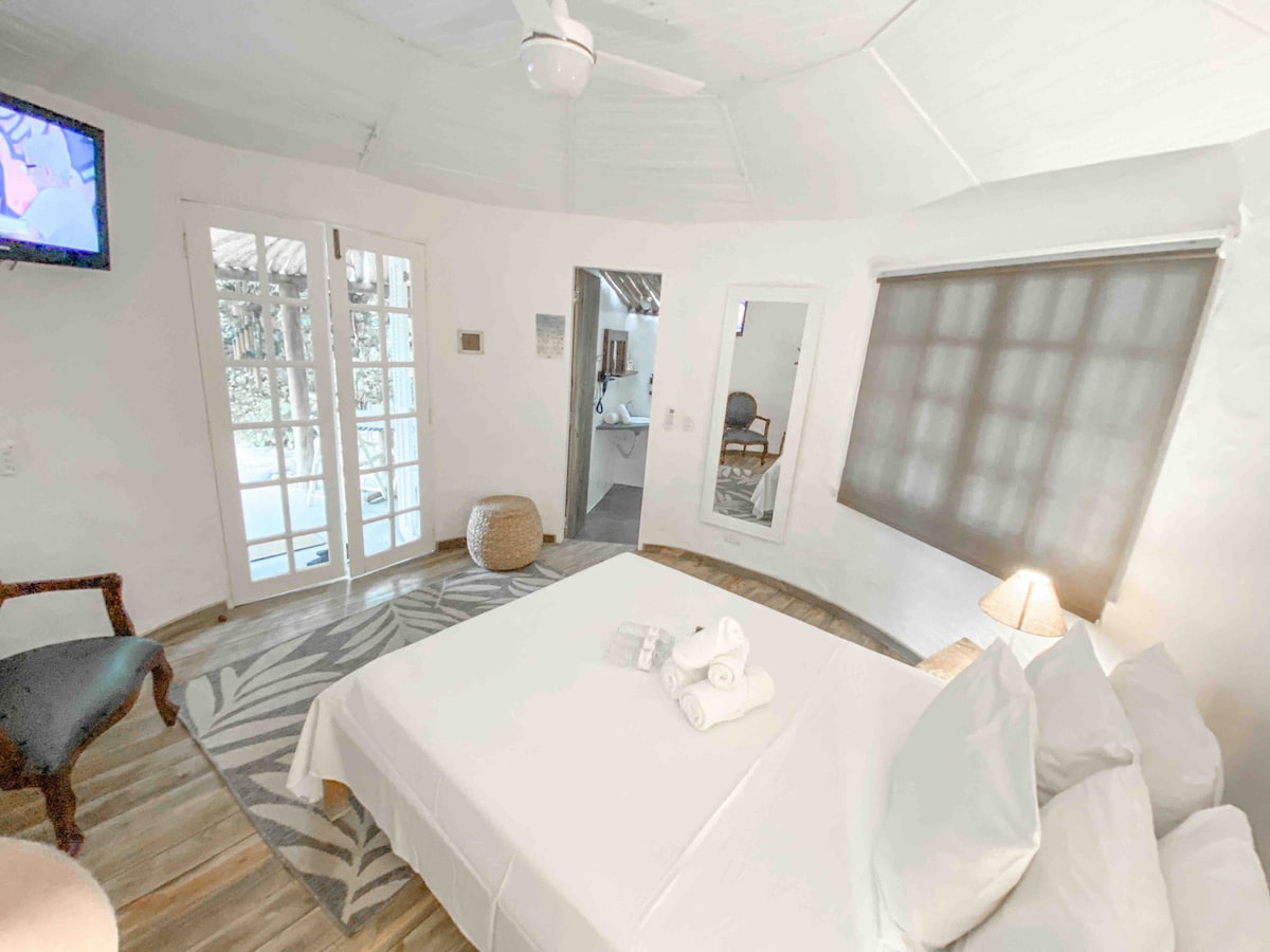 5 themed bungalows in a gated community on the beautiful Siriúba beach in the north of the island. All with exclusive access and ocean views. This is a bit of the Egypt bungalow. New and safe space. In addition to the accommodation with bed and bath linens, we offer, at no additional cost, 1 beach kit with 1 umbrella with a pump for fixing it in the sand, 1 cooler, and 2 beach chairs, one with a tray for holding glasses.