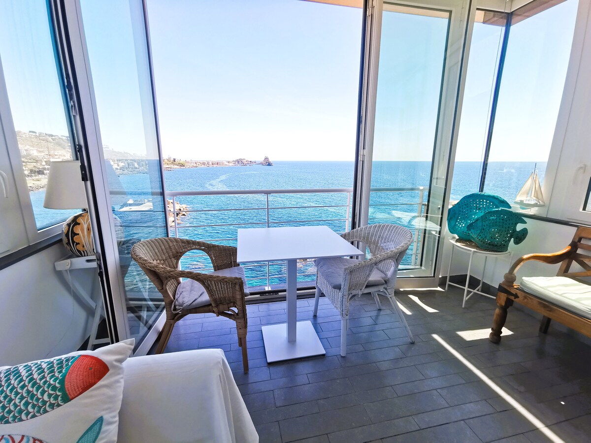 The apartment is fully equipped, has direct access to the bay and overlooking the blue Ionian Sea. Wrapped from the terrace surrounded by gardens full of native vegetation, the apartment has a seaview kitchen (through a porthole), a bathroom (with shower and bathtub) and a double bedroom. Enriched by 60s and 70s family furniture, recovered and restored with passion and attention to detail. The strategic position of Stazzo allows you to easily reach points of interest such as Etna (46 minutes), Taormina (33 minutes) and the city of Catania (29 minutes). In the village, just a few minutes walk, there are two small supermarket, a bakery, a butcher, a bar, two restaurants and a pizzeria. On the second Sunday of August, Stazzo celebrates the patron saint, St. John of Nepomuk, whom the Church in the Central Square is dedicated. Throughout the year, the place has a magnificent landscape of sea, and in the summer relax on sunny days, remaining calm and smooth, and the color blue contrasts with the black volcanic cliffs.