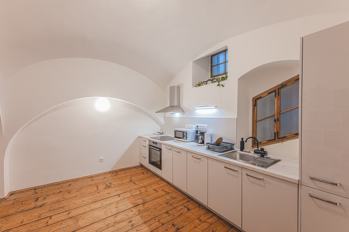 Family hotel apartment type is located in a quiet part of the pedestrian zone, which offers apartments with a unique view of the landmarks of Mělník - church and castle in the immediate vicinity of the view of the confluence of Elbe and Vltava (90 m). Located right in the historical center of the city on the pedestrian zone. Spacious apartments from 47 m2 to 133 m2 with accommodation capacity of 23 beds. Offer of 2-6 bed apartments (6 double beds with extra bed / 1 deluxe apartment - 5 fixed beds and extra bed in 3 rooms, 2 bathrooms).