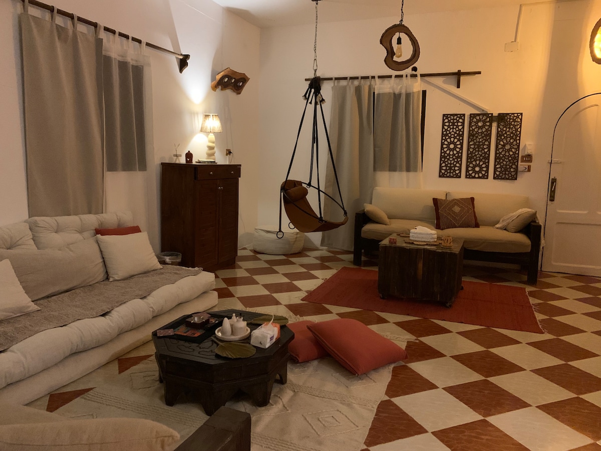 Cabana del mar is one of Assalah's hidden gems which promises you an unforgettable vacation in Dahab . Located directly on Assalah Beach ( steps from Dar Dahab ) , you Enjoy the best seaview from sunrise to sunset without having to leave the house or just relax in the beautiful balcony where u can enjoy a panoramic view of Assalah Beach and mountains while relaxing in the hammock. PLEASE NOTE: Due to Egyptian law : Egyptian couples or Arab passports holder need to provide a marriage proof .