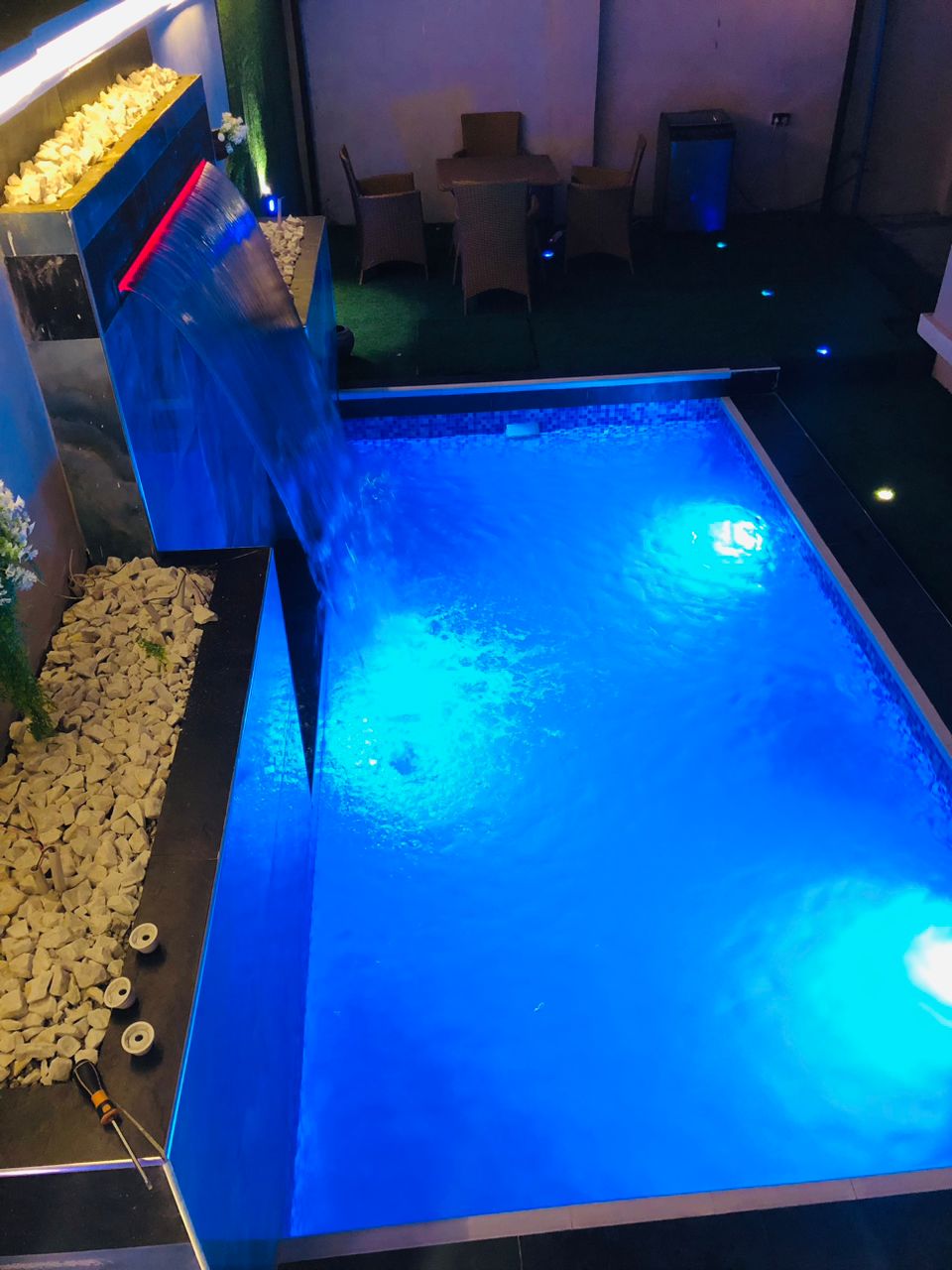 Omah Apartments is a block of 6 units 2 bedroom flats on 3 floors. Each flat has 4 units of split air conditioners, 8Kg washing machine, gas cooker, refrigerator, 3 smart TVs, DSTv cable etc The property has Starlink internet and a swimming pool. It is peaceful and there is housekeeper on ground to ensure the rooms are cleaned and fabrics are washed. There are gaming consoles and snooker board in some of the flats. Be assured of a peaceful stay worth every penny.