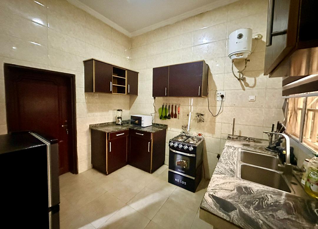 Thoughtfully furnished 3-bedroom apartment in a prime, well-planned estate in Wuye, Abuja. Each bedroom features a dedicated workspace with proper tables and seating, ideal for business travelers, remote work, and long stays. Enjoy calm, modern interiors, a fully equipped kitchen and kitchenette, reliable power and water, and a secure, serene environment with easy access to key business and lifestyle areas. Designed for comfort, productivity, and a true welcome-home experience.