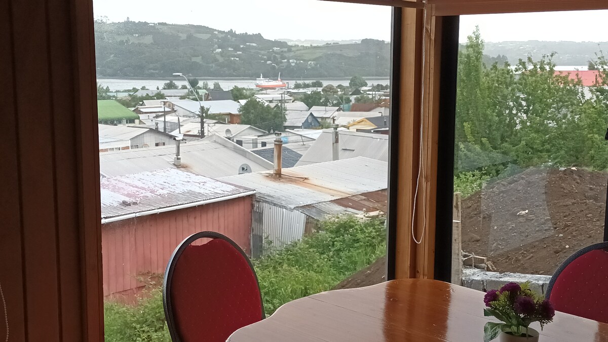 Fully equipped cabin rental per day, adapted for 5 people. It has a large patio, parking and terrace, with a beautiful view of the Dalcahue canal, also with high-speed wifi and DIRECTV. The cabin is located 3 minutes from downtown. For more information, contact María Soto.