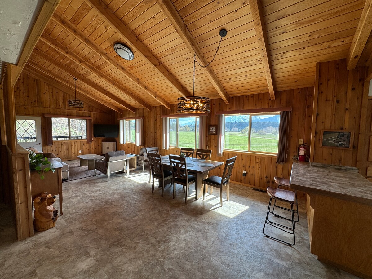 This lovely modern rustic barn suite-is nestled at the base of the breathtaking Bitterroot Mtns, on a 44-acre ranch in the Bitterroot Valley of MT! Hike the scenic mountain trails nearby, or just explore the peaceful property that surrounds you. Enjoy feeding treats to the adorable mini highland cows, horses & chickens that call this farm their home.♡ Minutes away- the valley has craft breweries, shopping, & casual or fine dining. Come escape to one of the true 'last best places' in the US!