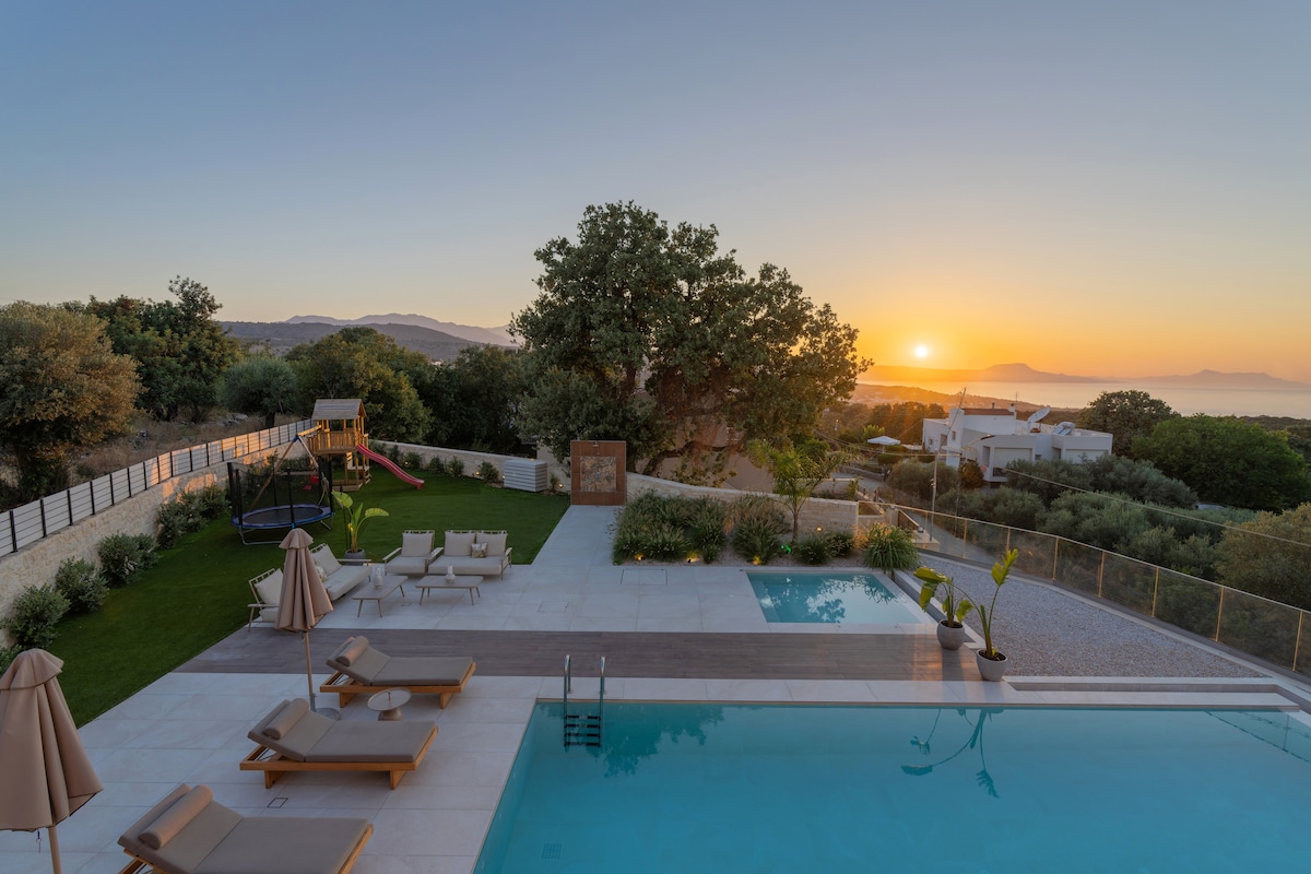 Welcome to In Vivo, a brand-new luxury villa in the charming village of Vamos, just 1.5 km from the center. Enjoy 270 sqm of elegant living space, a 90 sqm heated infinity pool with stunning sea views, a private playground, and modern amenities including a two fully equipped kitchen and AC bedrooms. Perfect for families, couples, or groups seeking comfort, privacy, and authentic Cretan hospitality for an unforgettable, relaxing escape in Crete.