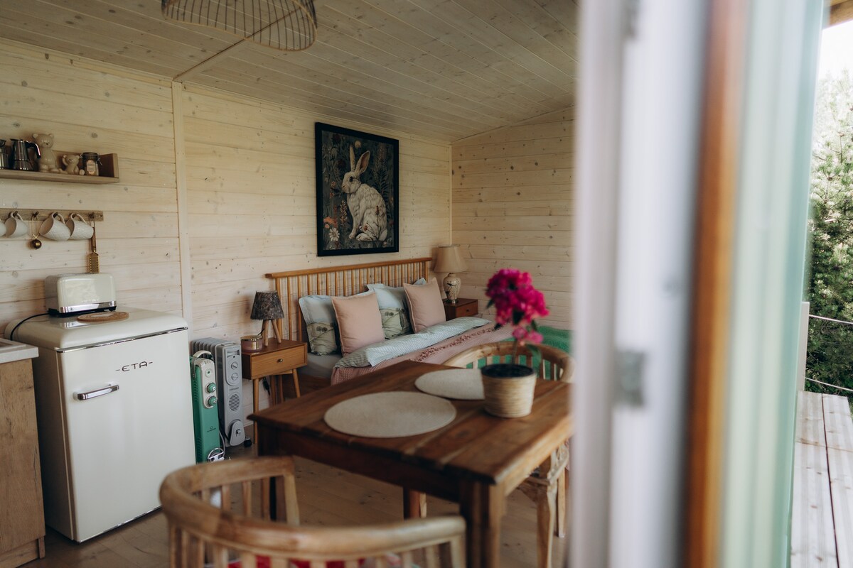 Botanical cottage je vybavena prostorným dvoulůžkem s pohodlnými matracemi, lněným povlečením a hebkými ručníky. Jednoduché jídlo si můžete připravit v kuchyňském koutku (varná konvice, plotýnka) nebo využít prostory penzionu pro větší vaření (20 metru). K dispozici je pitná voda v barelu, sprcha a toaleta je součástí penzionu (20 metru). Možnost objednat privátní wellness (vířívka, sauna, hottube). Možnost objednat snídani.