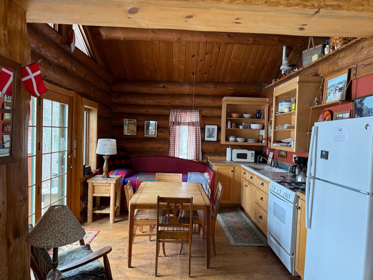 One bedroom cabin sit 50 feet from the shores of Caribou lake, clarity of up to 40 ft. and 160 feet de. One of the few lakes that still offer habitat for Lake trout. The cabin has a deck overlooking the lake, a fireplace, full kitchen and sleeps up to 5 or 6. A great place for a romantic retreat, and perfect for a small family or a few friends. Fantastic swimming, fishing and hiking trails right out your door. Well equipped kitchen, but no oil. Only one dog allowed in the summer.