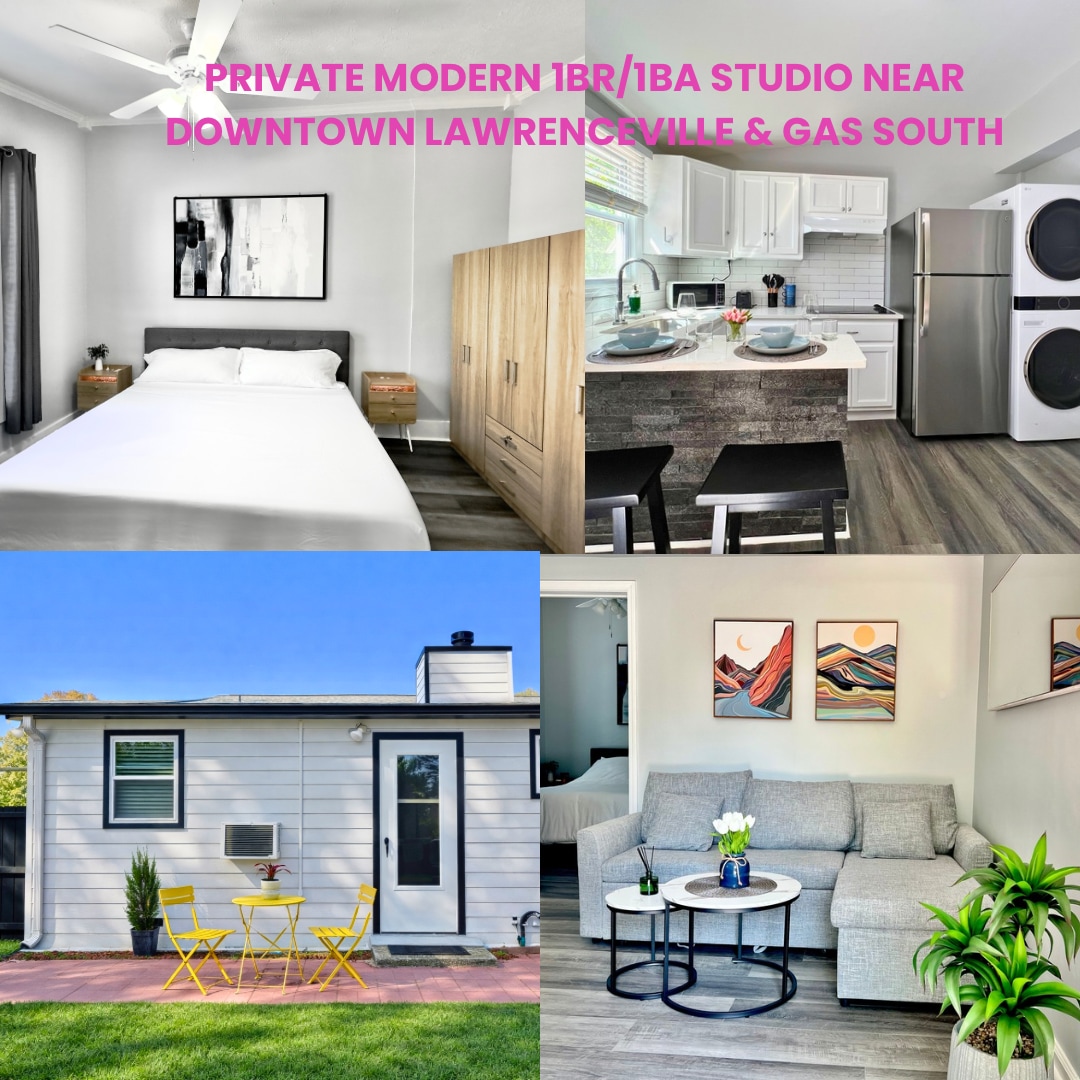 Come Stay at our tiny farmstead! Great Location just inside the ATL perimeter. Keyless Private Entrance Dedicated Parking Spot Light-filled open space Full Functional Kitchen Full Bath Private Patio, gated 8' privacy fence Simple Complementary Breakfast High speed fiber internet with Wi-Fi 6 speeds Level 2 charging with NEMA 14-50 plug /50 amps Separate Work Space TV with Streaming Services