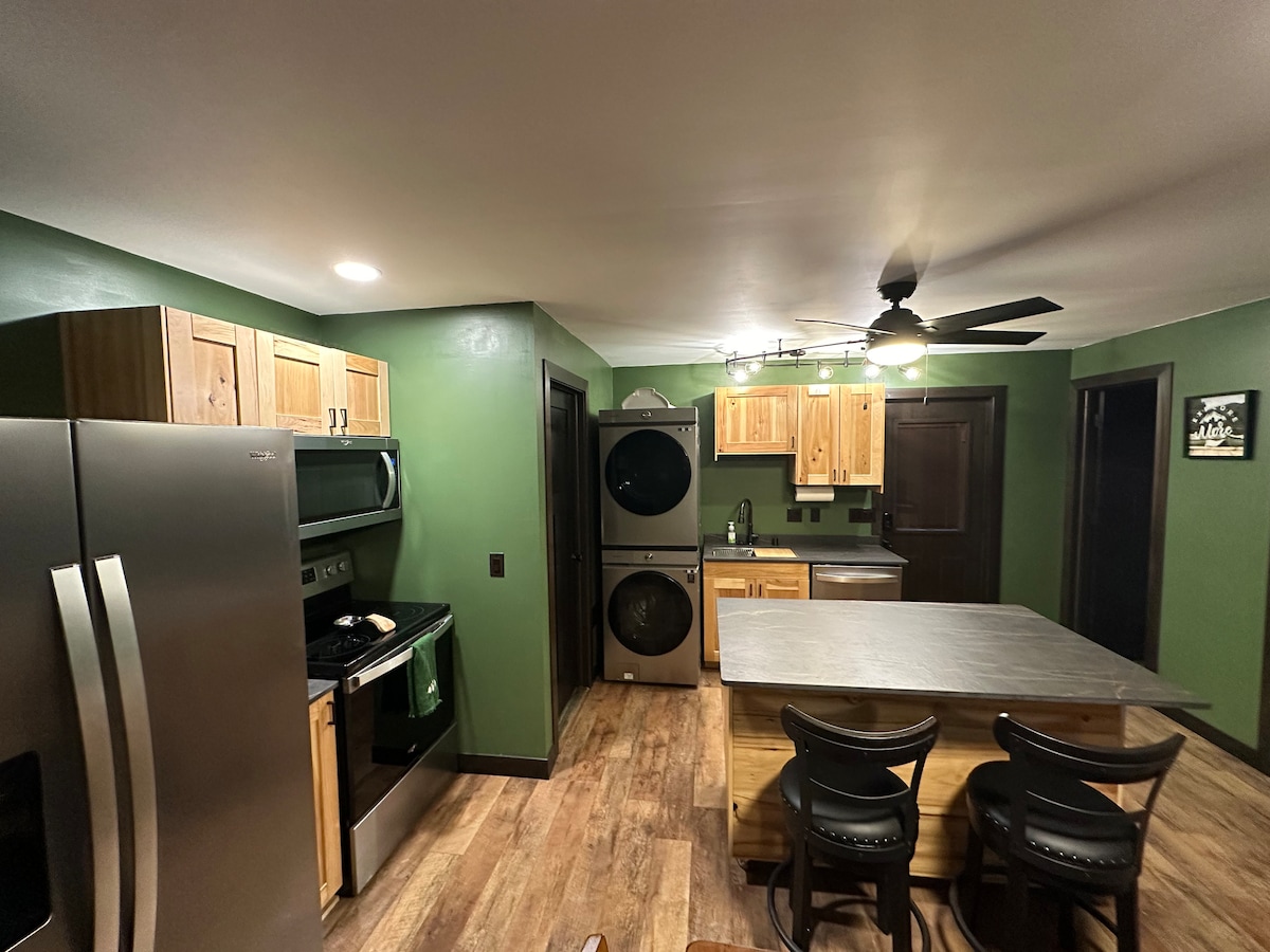 Riverfront one bedroom condo in a tranquil area of Downtown Wisconsin Dells. Take a stroll near the beautiful River Walk and enjoy the magnificent scenery and unique attractions of Downtown Wisconsin Dells. Whether you need a few days to relax and decompress or if you are in town for business or games, our condo offers a fully equipped kitchen, a king size bed and a queen size pull out couch . There is an indoor community pool, hot tub and sauna. There is also a seasonal outdoor pool .
