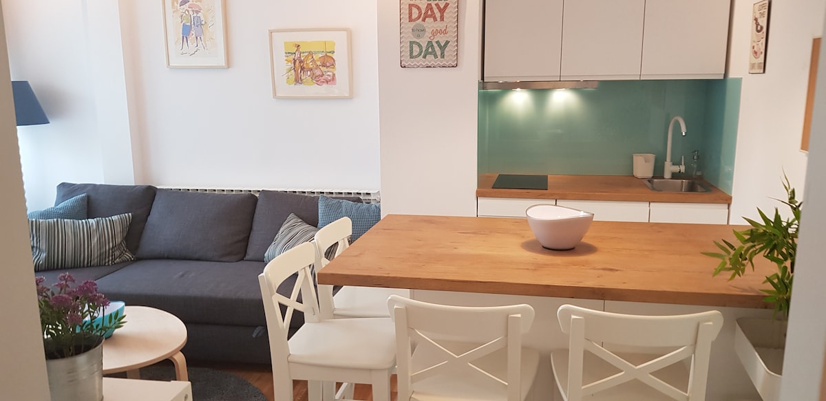 Kick back and relax in this calm, stylish space. The aparment is newly renovated and completely refurnished. We thought of every single detail in creating it. As one guest described “all the comfort of a home with conveniences of a hotel”. The bedroom can be completely darkened. An extra comfortable queen bed with white satin bedlinen promises good rest. A modern small bathroom has a walk in shower. Heated floor. All towels in white cotton for upscale hygiene standard. Cozy living room. Enjoy😉
