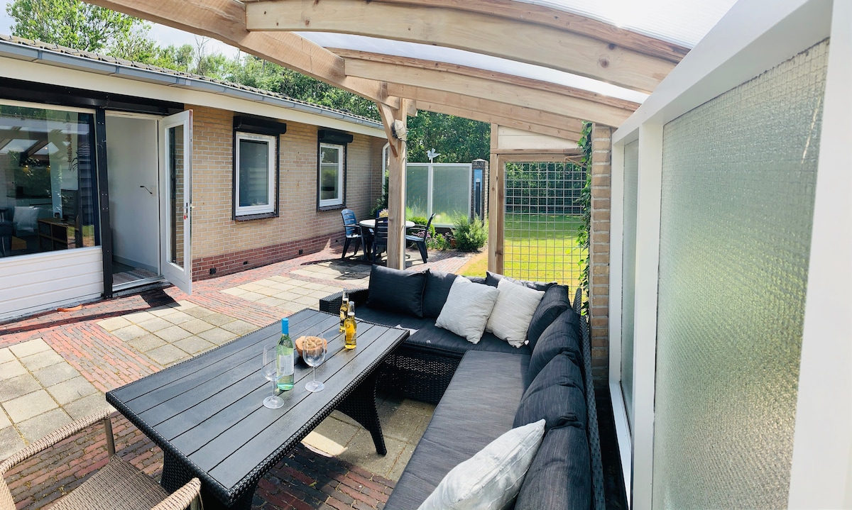 Beachhouse Bungalow op 400 meter loopafstand van het strand. Het huis is sfeervol ingericht en voorzien van alle gemakken, een overdekt terras, vaatwasser, wasmachine,droger, nespresso apparaat, smarttv voor netflix, boxspring bedden en elektrische verduistering. Een ruime tuin en 2 terassen om heerlijk te genieten van het mooie weer. De tuin is afgesloten / omheining